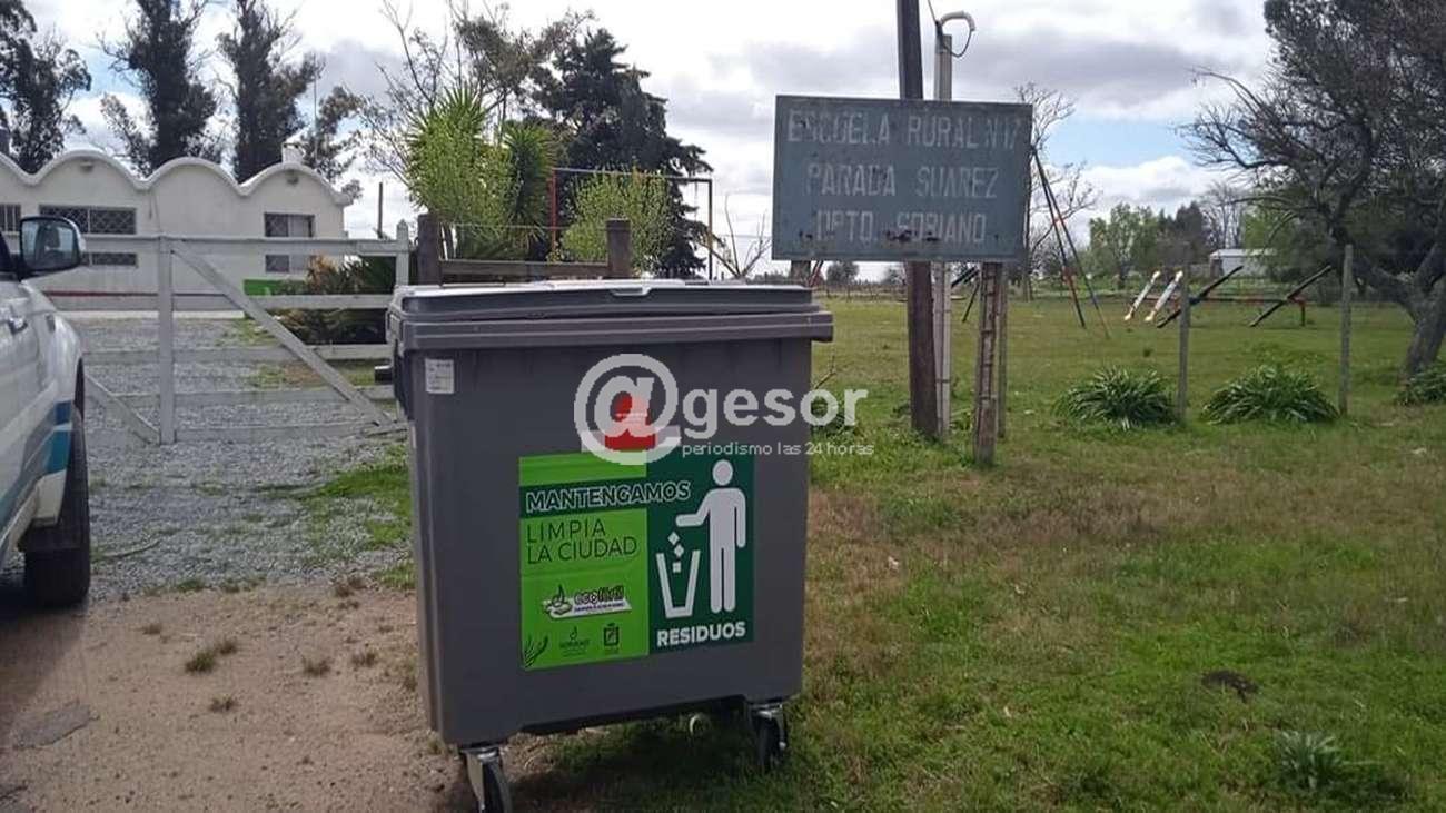 El departamento de Higiene Bromatología y Medio Ambiente de la Intendencia de Soriano continúa con la distribución de los contenedores para residuos en algunas escuelas rurales.