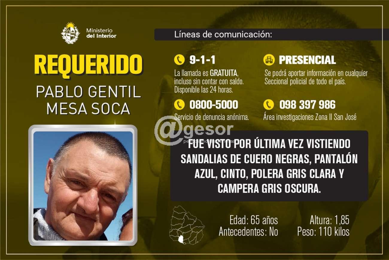 La Jefatura de Policía de San José solicita la colaboración para ubicar a Pablo Gentil Mesa Soca de 65 años.