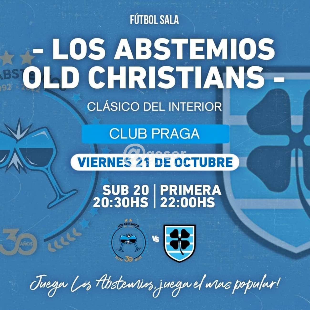 Desde las 20.30 horas en Sub 20 y a las 22.00 horas en Primera con entradas a $ 150 e ingreso por portón de calle Varela, el gimnasio "Alberto Della Santa" se viste de fiesta este viernes con la reedición del mayor clásico del fútbol sala del Interior con Los Abstemios recibiendo a Old Christians por el Campeonato Uruguayo.