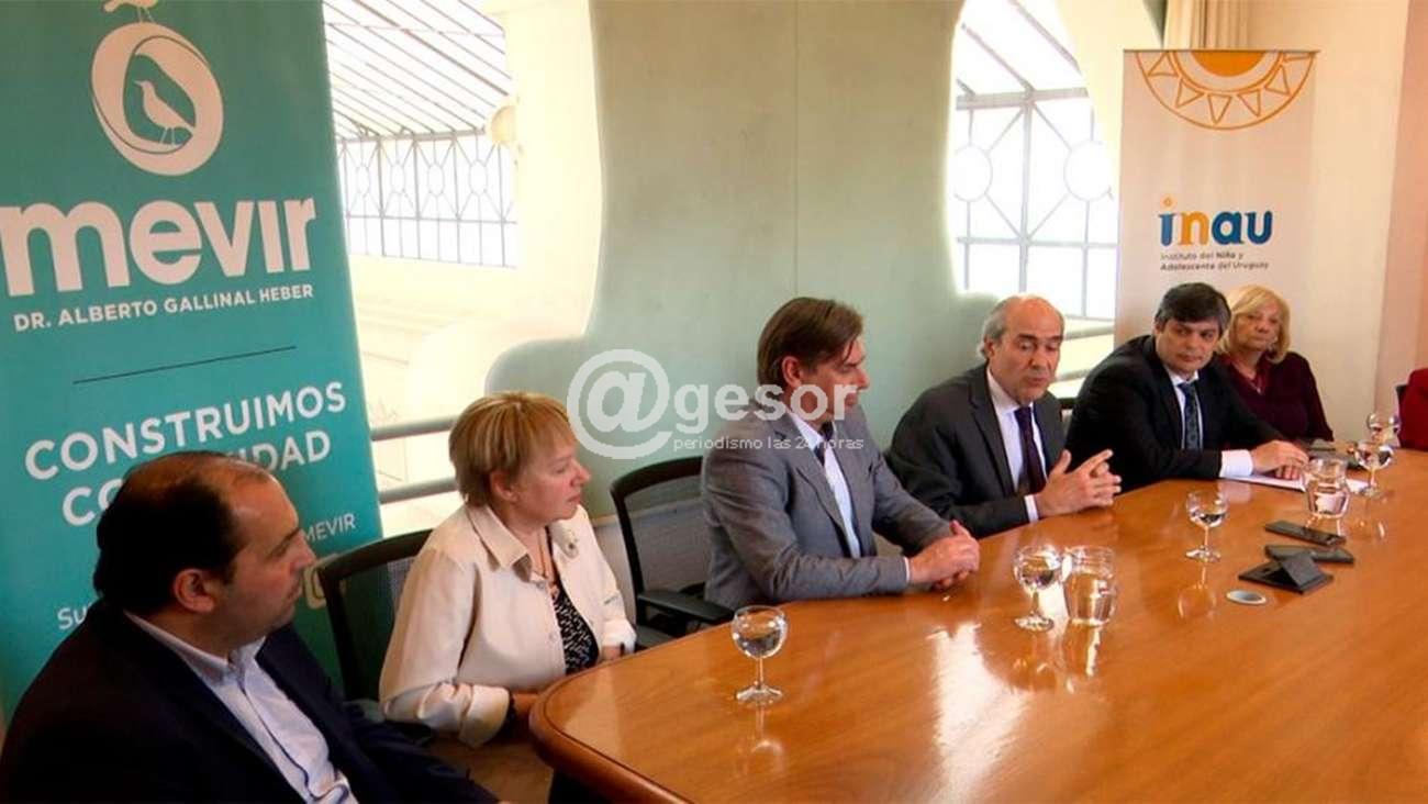 La firma se efectuó este lunes 24, en la sede del INAU, con la participación del presidente y el vicepresidente del organismo, Pablo Abdala y Aldo Velázquez, respectivamente; el titular de Mevir, Juan Pablo Delgado, y otras autoridades de ambos organismos.