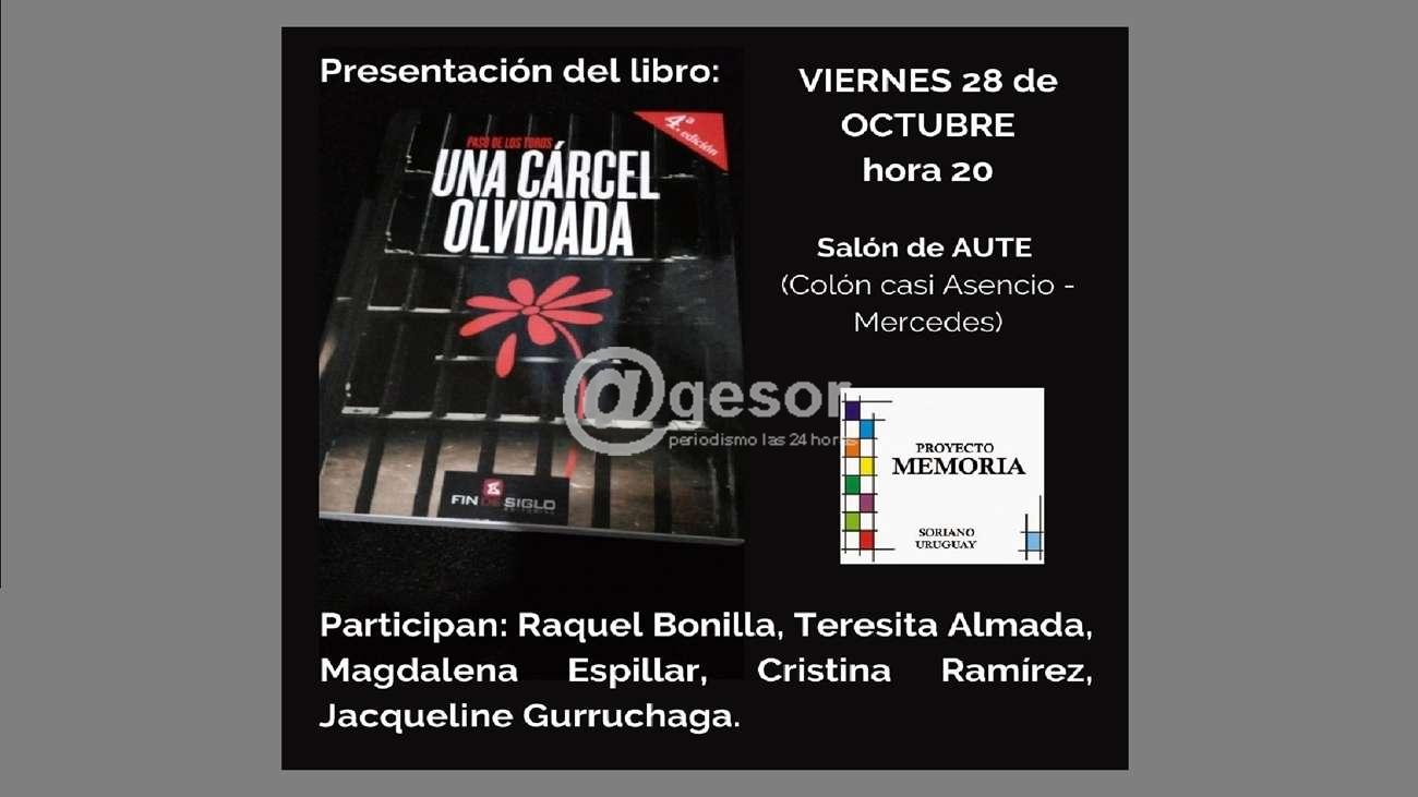 Este viernes se presenta el libro “Paso de los Toros, Una Cárcel olvidada”.  Se trata de una actividad de la Comisión Memoria, Justicia y contra la Impunidad de Soriano. Participarán: Raquel Bonilla, Teresita Almada, Magdalena Espillar, Cristina Ramírez, y Jacqueline Gurruchaga.