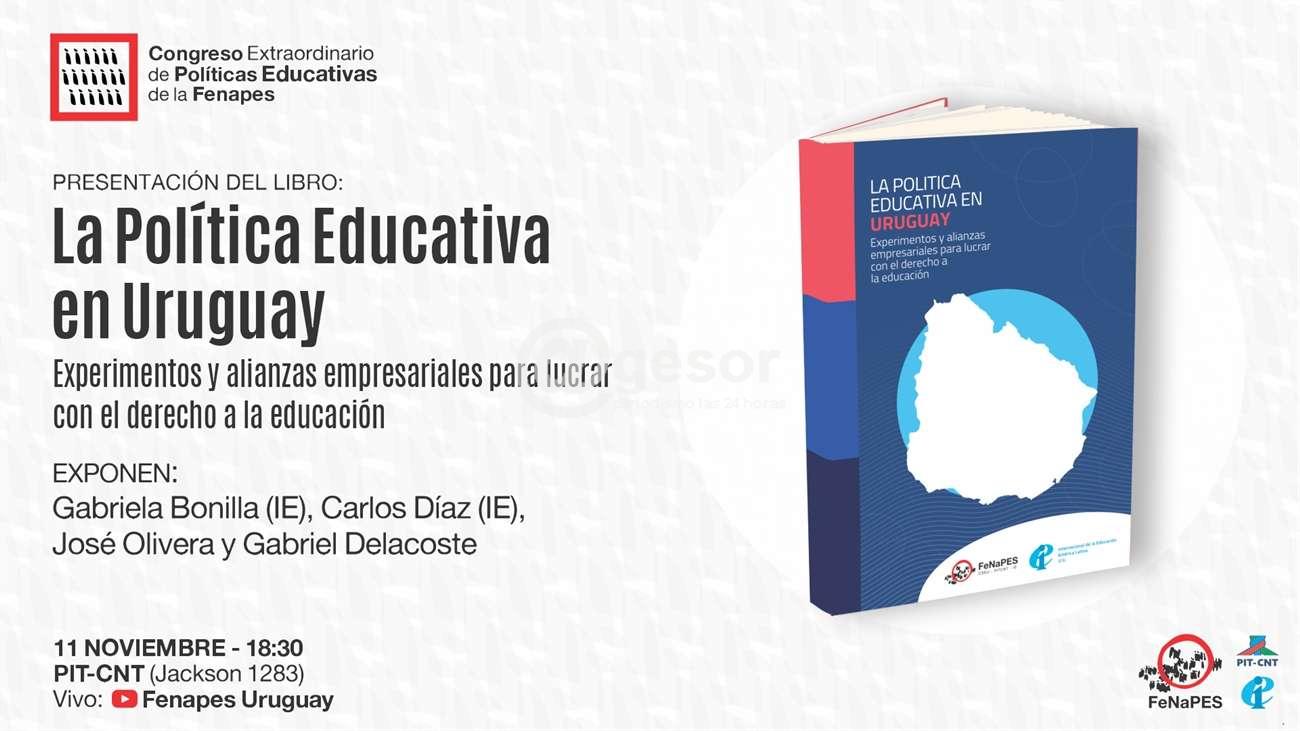 Como apertura del Congreso Extraordinario, el viernes 11, a las 18:30, se presentará el libro "La política educativa en Uruguay. Experimentos y alianzas empresariales para lucrar con el derecho a la educación". Participarán de la mesa, Gabriela Bonilla (coordinadora de la publicación) y Carlos Díaz de la Internacional de la Educación, José Olivera por la Fenapes y el politólogo Gabriel Delacoste, quién prologó la investigación.