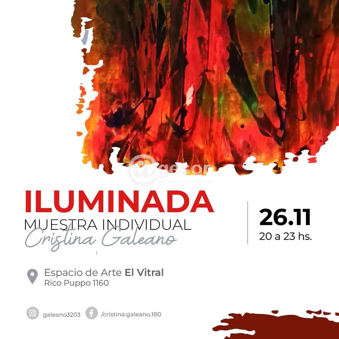 El próximo  viernes se inaugura la muestra Iluminada, una muestra individual de la artista plástica doloreña Cristina Galeano. Será  en el Espacio de Arte El Vitral, de Dolores.