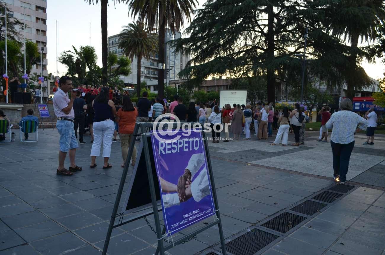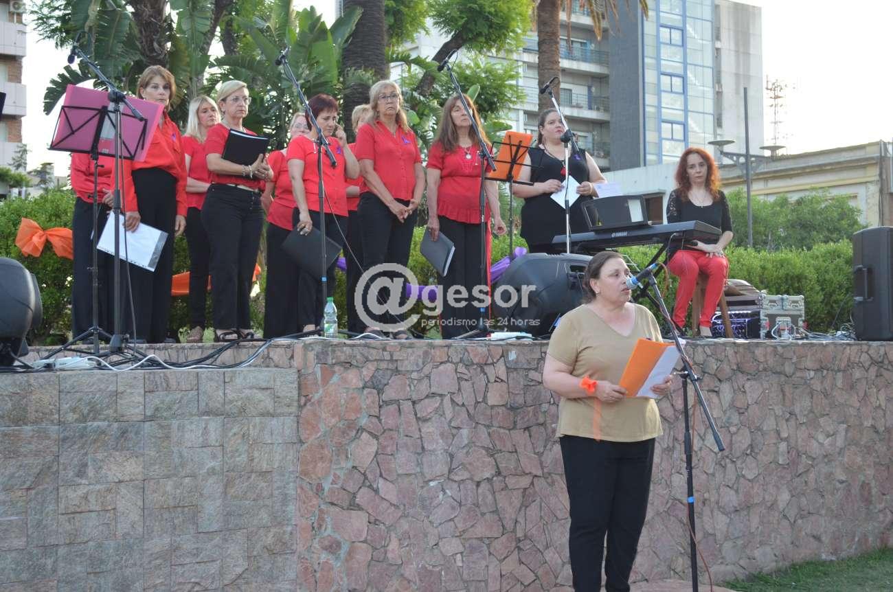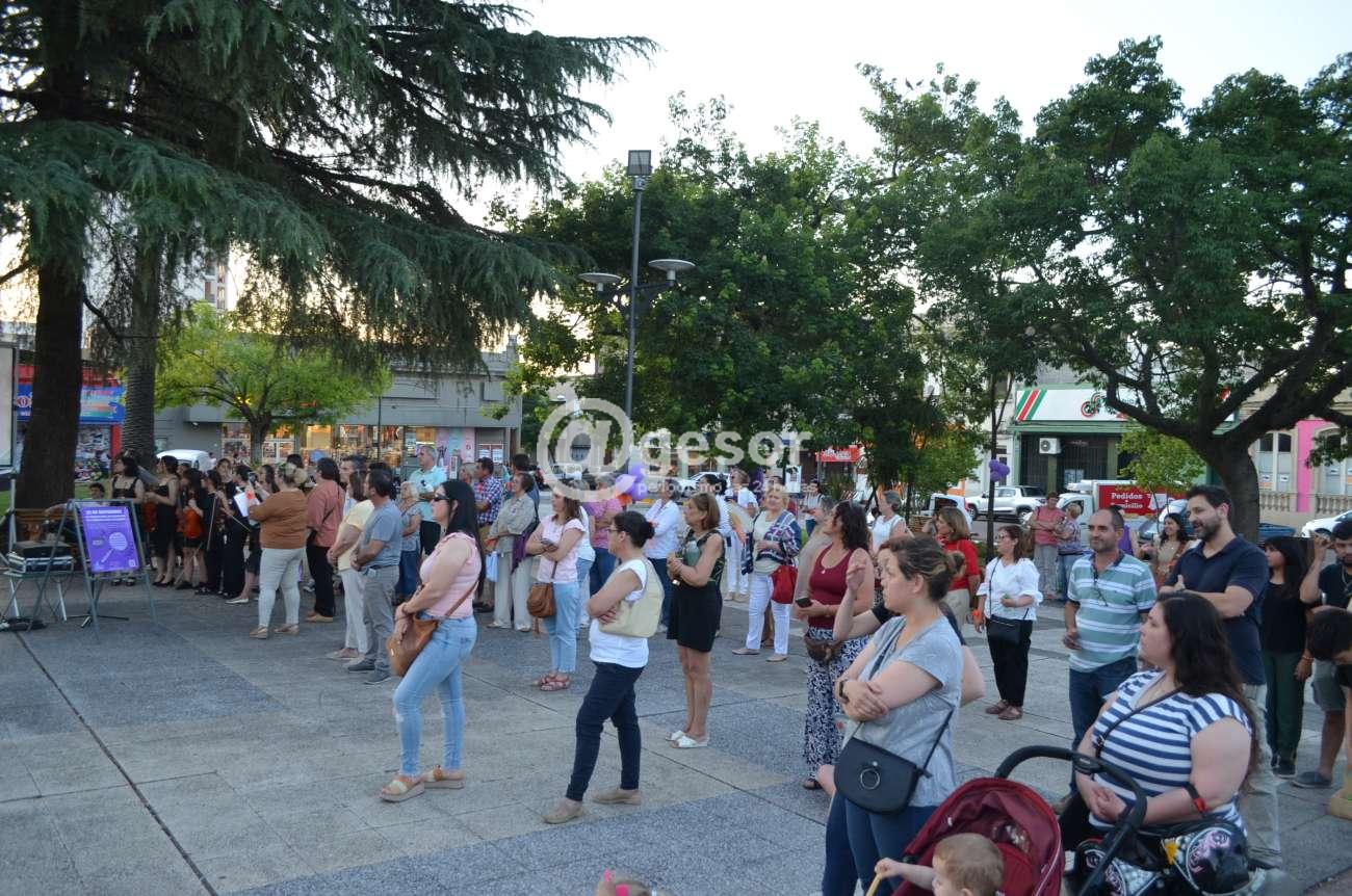 Realizaron un acto en plaza Independencia de Mercedes, en la víspera del Día de la no violencia hacia la mujer. Una actividad en la que intervinieron un ensamble de violines de alumnas del Conservatorio Municipal de Música y el Coro de adultos del mismo conservatorio.