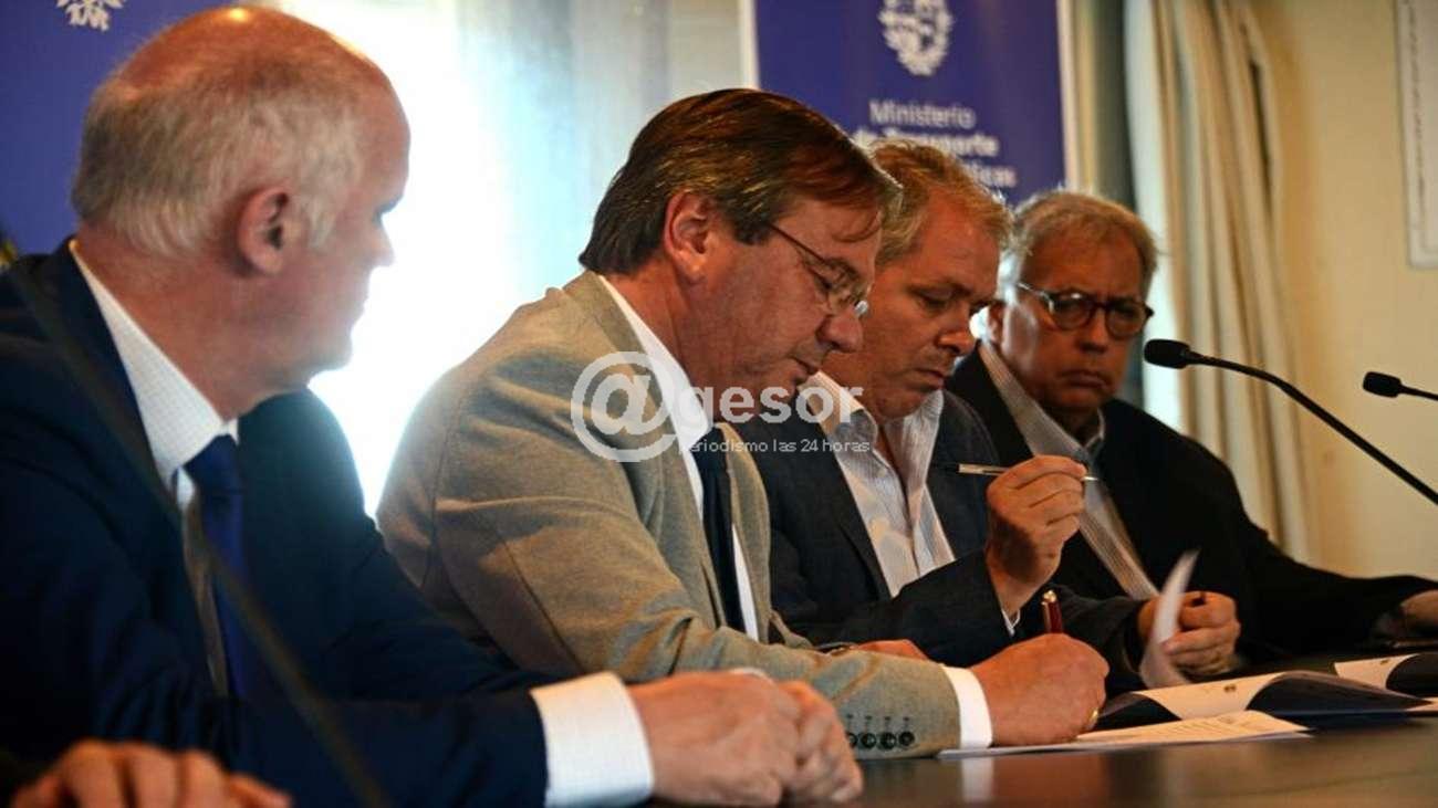 La firma se desarrolló en la sede ministerial y asistieron el presidente del Congreso de Intendentes, Guillermo López; el subsecretario de Transporte, Juan José Olaizola; el presidente de la Corporación Nacional para el Desarrollo (CND), José Luis Puig, y el integrante de la comisión administradora del Sistema Único de Cobro de Ingresos Vehiculares (Sucive), César García.