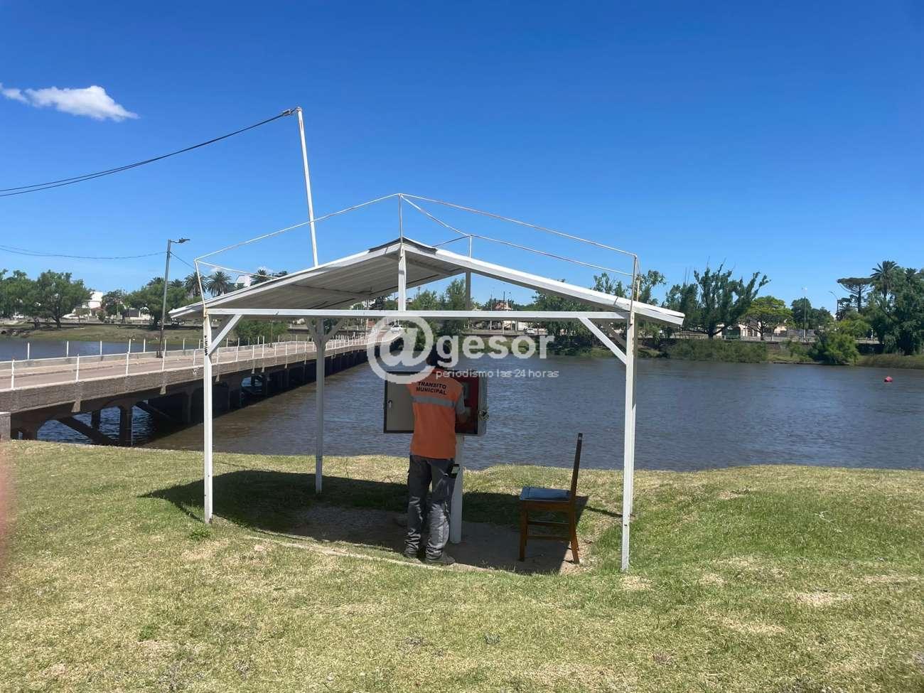 El Edil Luciano Andriolo informó: "Recorrimos la pasarela que da ingreso a la Isla del Puerto en Mercedes. Es increíble que en el año 2022 con temperaturas de más de 30 grados no sea automático el semáforo.