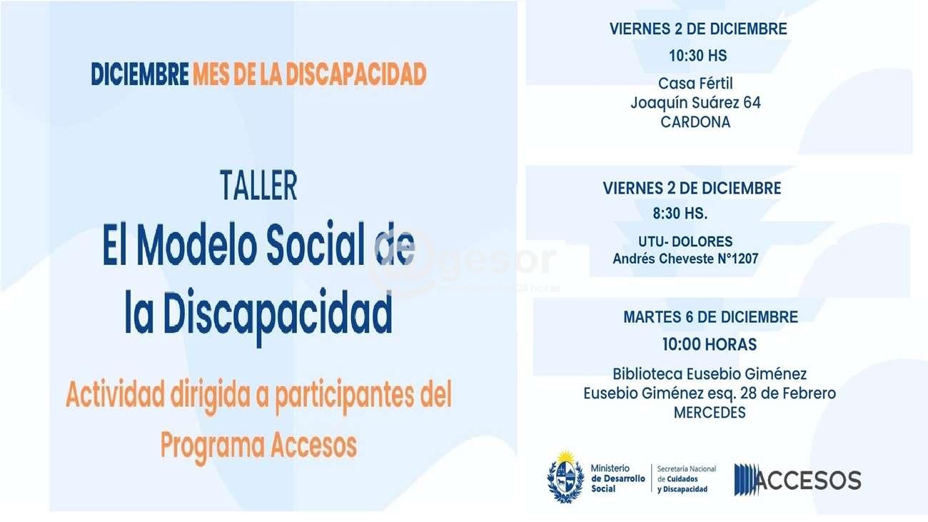 El Ministerio de Desarrollo Social, junto a la Secretaría Nacional de Discapacidad  y el programa Accesos realizan una serie de talleres en el mes de diciembre. Los mismos girarán en torno al tema El modelo social de la discapacidad, y constarán de  actividades dirigidas a los participantes del programa Accesos.