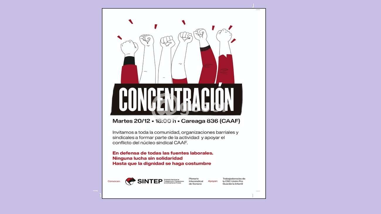 Respaldan a la CAAF el Sindicato Nacional de Trabajadores y Trabajadoras de la Enseñanza Privada (SINTEP), el Plenario Intersindical de Soriano y los trabajadores/as de la OSC Unión Pro Guardería Infantil.