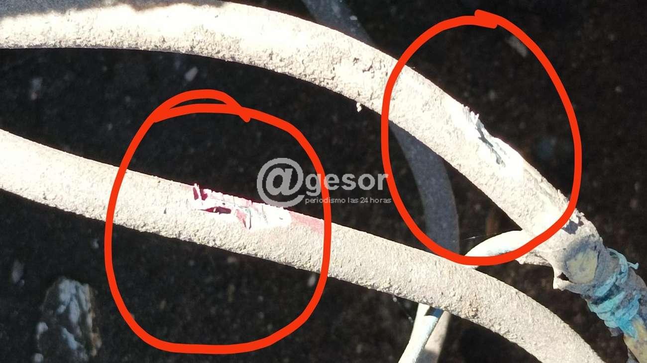 Personal municipal constató daños en el cableado situado dentro de una cámara subterránea, cuya tapa fue retirada, accediendo así a los cables donde fue cortada su cubierta exterior, mostrando signos de ignición por cortocircuito.