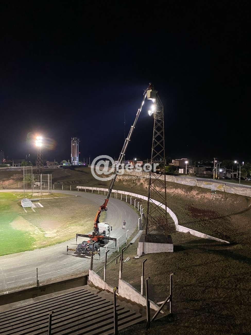 Es por ello que personal de la comuna trabajó en cada una de las cuatro torres utilizando una grúa de gran porte debido a la altura de las mismas. La primera etapa fue el retiro de los focos que no funcionaban, dejando los que estaban operativos e incorporando 20 focos LED (4 de 750 watts y 16 de 500 watts) que integran el sistema lumínico. De esta manera se combinaron los focos actuales con las nuevas luminarias incorporadas.