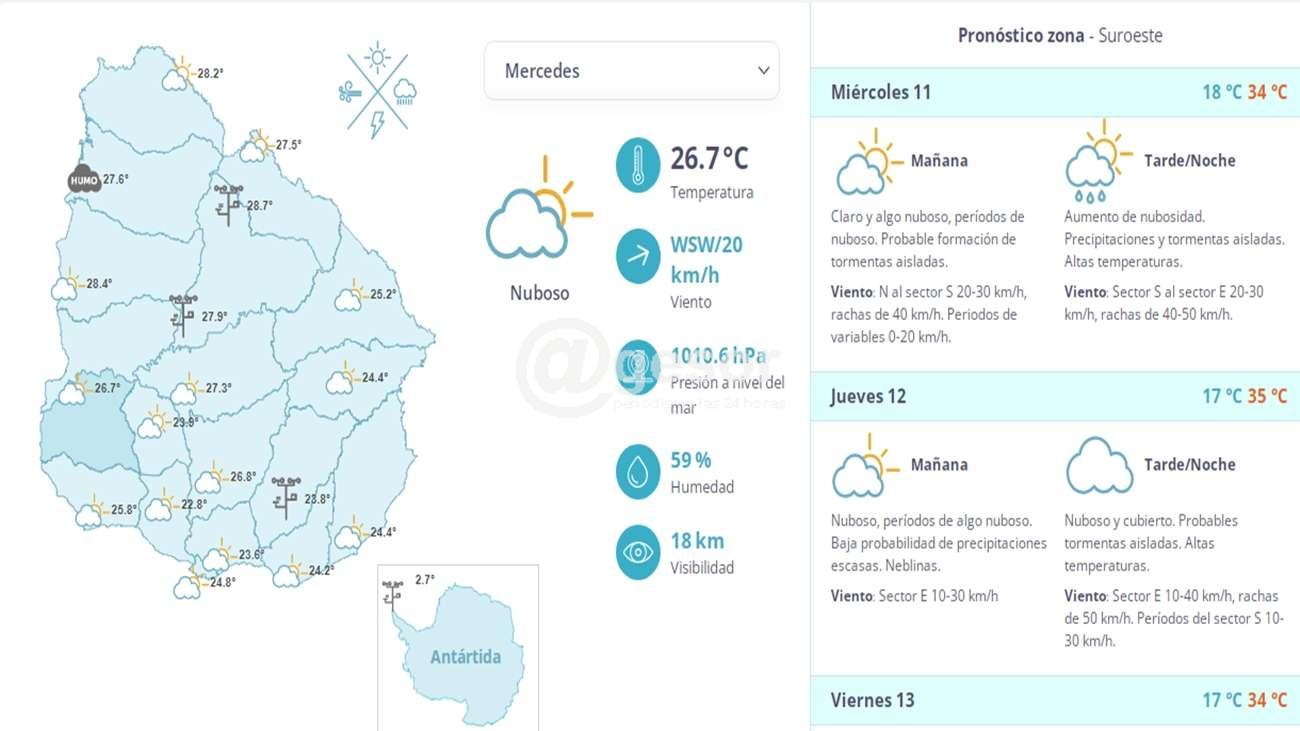 La temperatura seguirá siendo alta para el resto de la semana, aunque en la tarde/noche de este miércoles 11 podrían registrarse algunas precipitaciones aisladas en esta zona del país. Inumet pronostica que desde hoy y hasta el viernes las temperaturas rondarán entre los 15 y 25 grados.