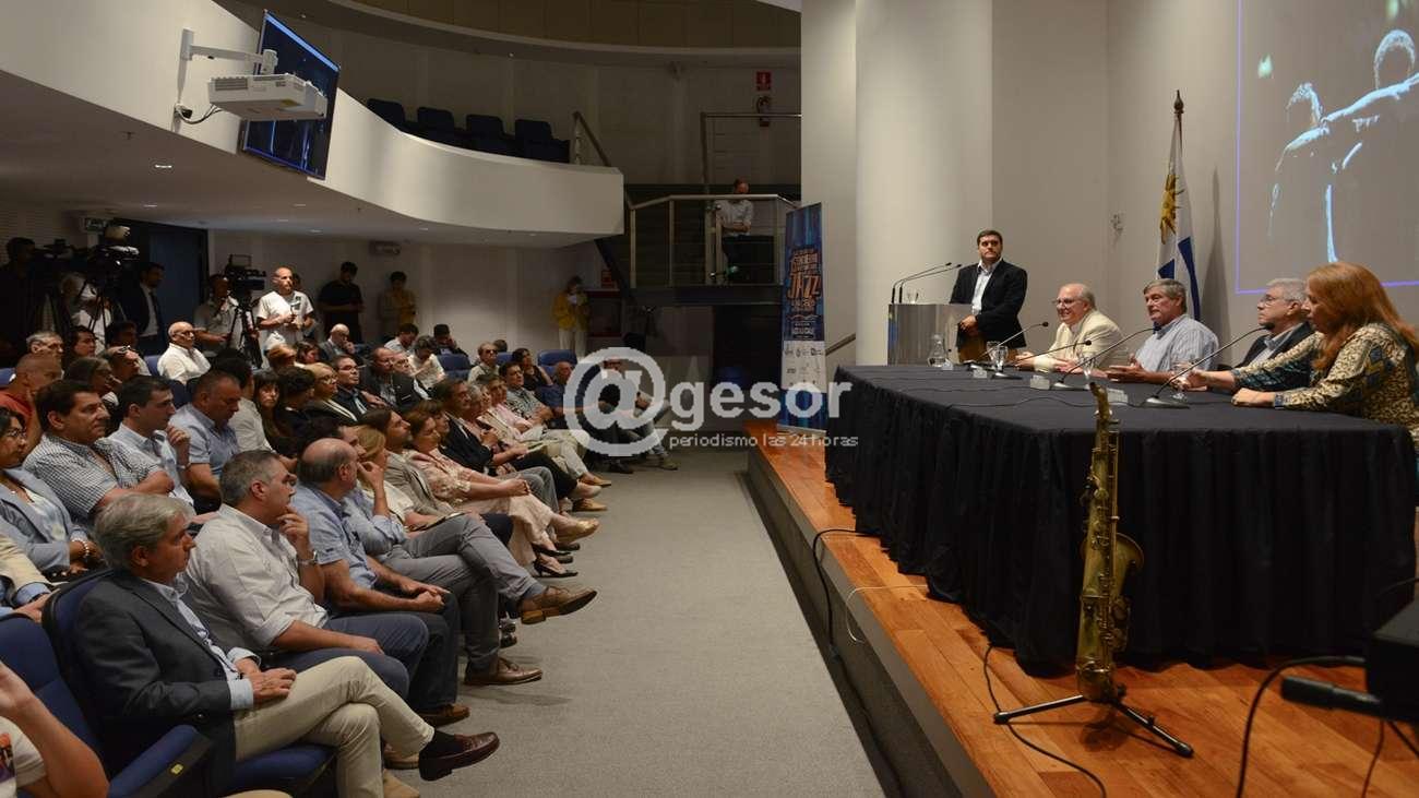 El presidente de la República, Luis Lacalle Pou, y el ministro de Turismo, Tabaré Viera, participaron del lanzamiento de una nueva edición de Jazz a la Calle, este jueves 12 en el salón de actos de Torre Ejecutiva. El encuentro internacional de música se realizará del 14 al 22 de enero en Mercedes.