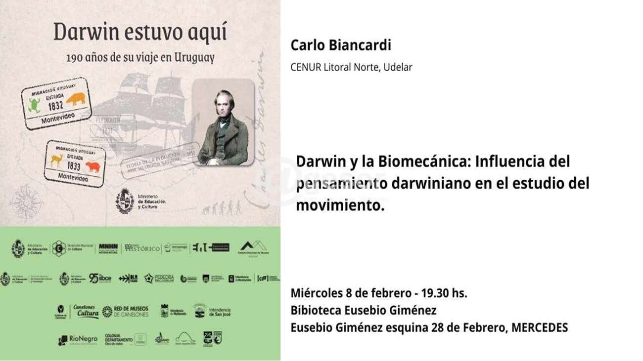 En el marco de la muestra “Darwin estuvo aquí. 130 años de su viaje en Uruguay” se realizará una charla denominada “Darwin y la Biomecánica: influencia del pensamiento darwiniano en el estudio del movimiento” a cargo del Prof. Carlo Biancardi del CENUR Litoral Norte (Universidad de la República).