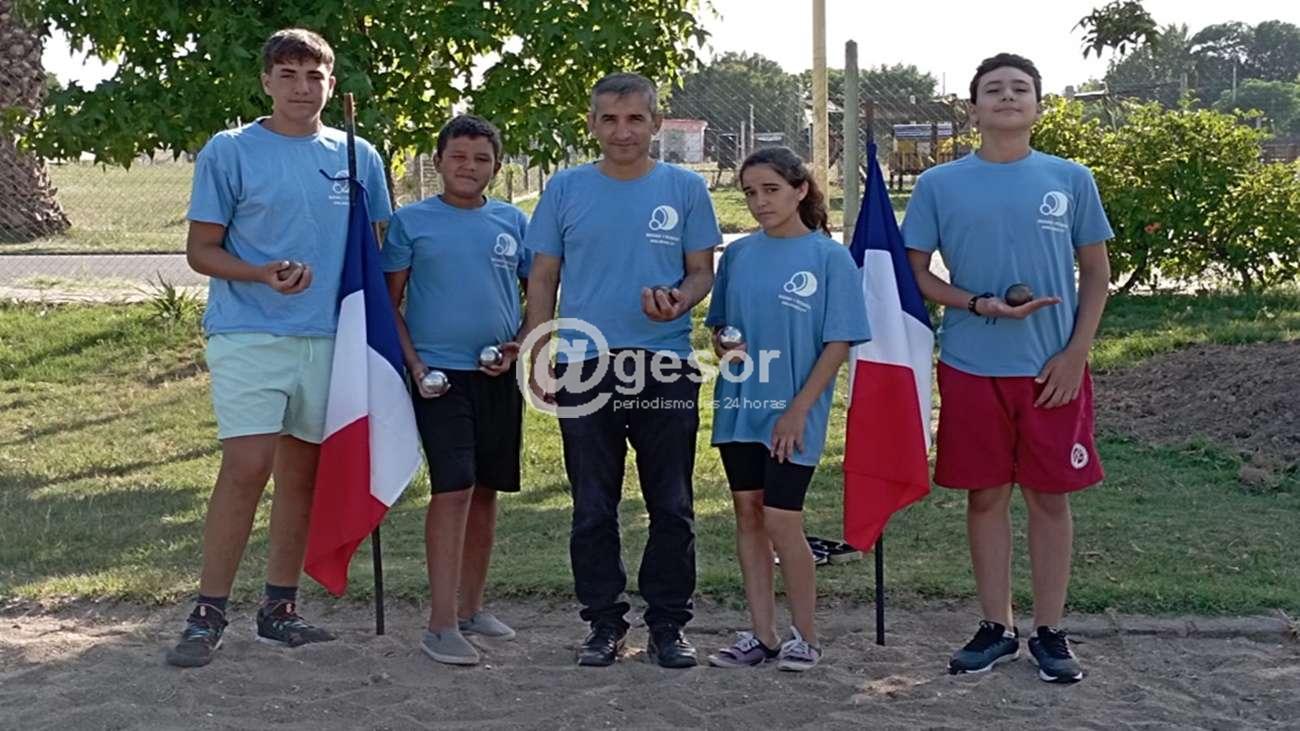 El nuevo escenario, fue construido a partir del trabajo de padres de los alumnos de la Escuela, y la inauguración estuvo colorida por banderas francesas en homenaje al país de origen de la Petanca.