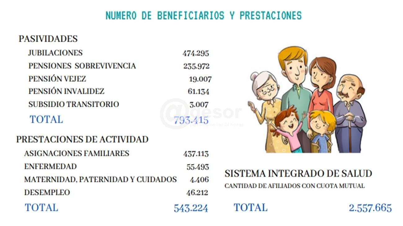 Al discriminarse el número de beneficiarios por prestaciones que paga el BPS, surge el siguiente detalle: