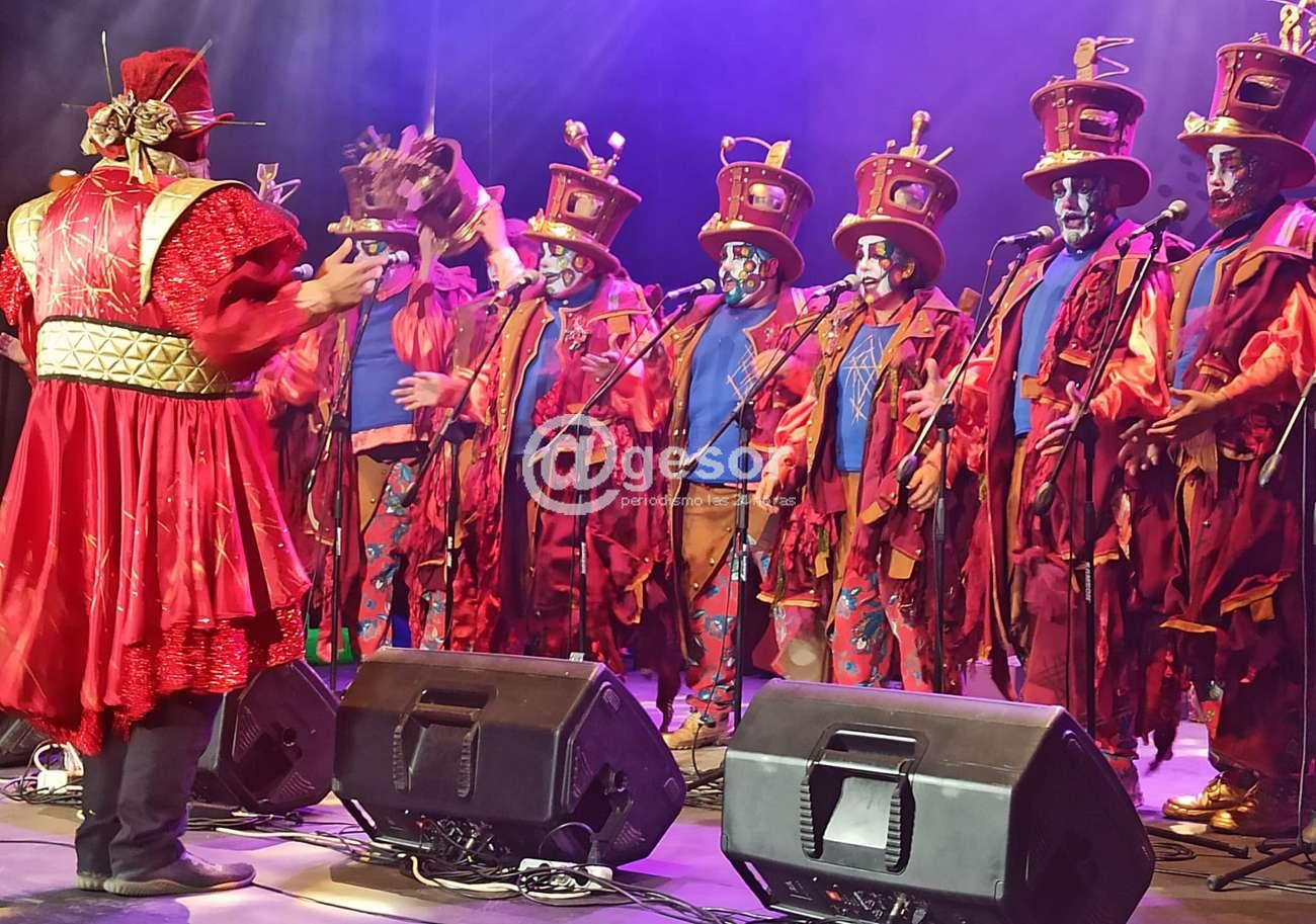 El estilo está cambiado, el texto, la música plantea dificultades por lo  arriesgada, y ese es el camino elegido por la murga para este año, y con algo más de rodaje y quizás por la influencia de poder estar en el teatro, la murga levantó y bastante lo hecho en la primera ronda, el coro más allá de pequeños detalles en un par de cierres, en la afinación, en el resto de la actuación cantó de manera afiatada, con el coro firme, con un buen trabajo de El Araña Píriz y Pedro Casco en el hilo conductor, que en el final dedicaron la actuación a Florencio Acosta siempre en el recuerdo y al recientemente desaparecido Tío Sergio Di Matía, también hubo destaque en la murga realizando dúos y tríos que rindieron, y terminaron con una canción final bien cantada, que gustó al público que los despidió de pie.