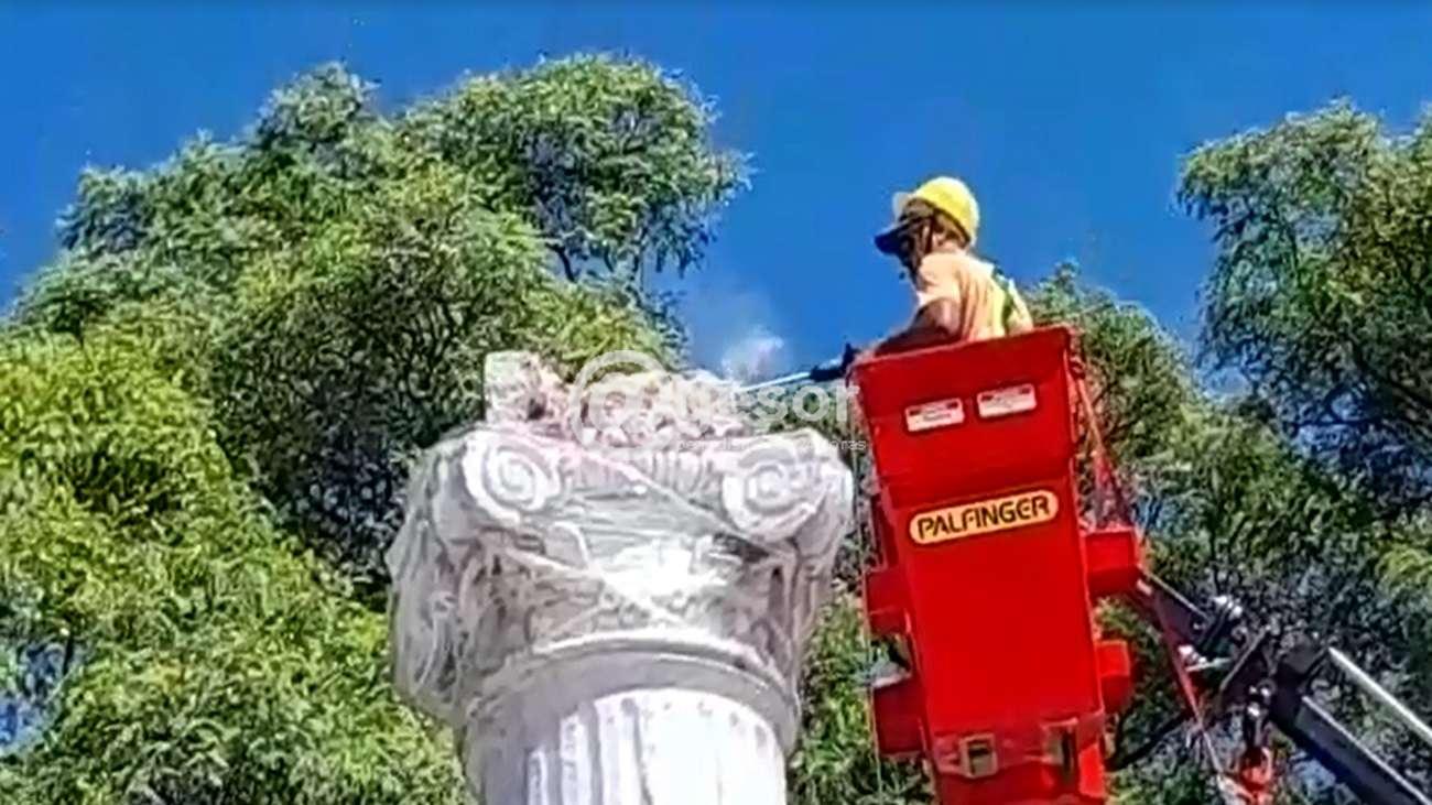 Comenzaron este lunes los trabajos para la restauración de la "Columna de la Libertad" en plaza Rivera, en Mercedes.