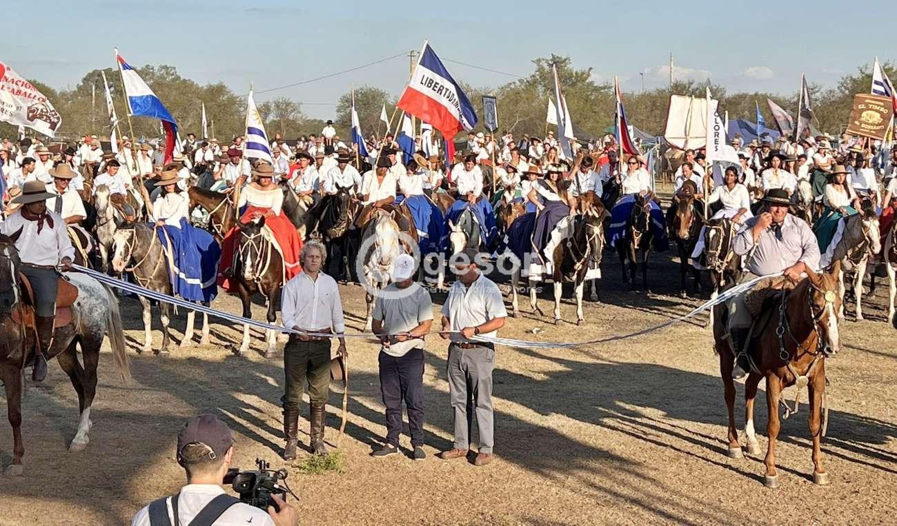 Fue recibibo por el Intendente (i) de Soriano, Mariano Rodríguez, que estuvo acompañado por su esposa Florencia Besozzi, el Alcalde doloreño Joaquín Gómez y por la organización de la Fiesta, encabezada por Mariela Andriolo. Precisamente Lacalle Pou, Rodríguez y Cortaron la cinta dejando oficialmente inaugurada la Fiesta en forma simbólica y en particular el desfile de caballería gaucha que recorrería parte de la ciudad.