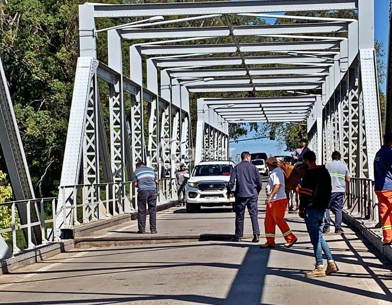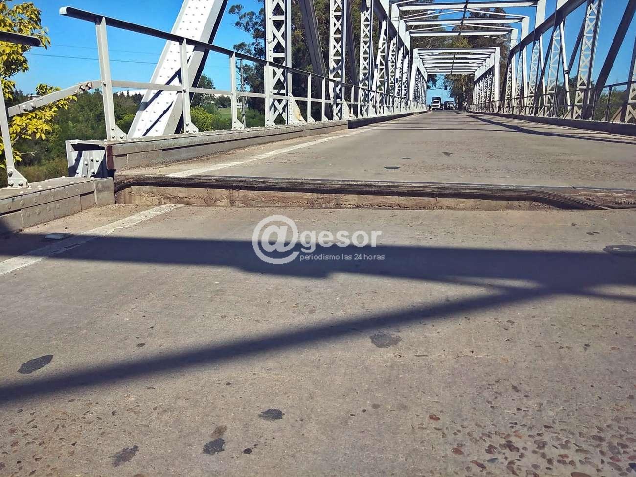 En la mañana de este lunes en puente sobre el río San Salvador en los accesos y salida de Dolores, cedió en un tramo de su estructura, por lo que determinó que se adoptaran medidas de prevención cortando el tránsito vehicular.