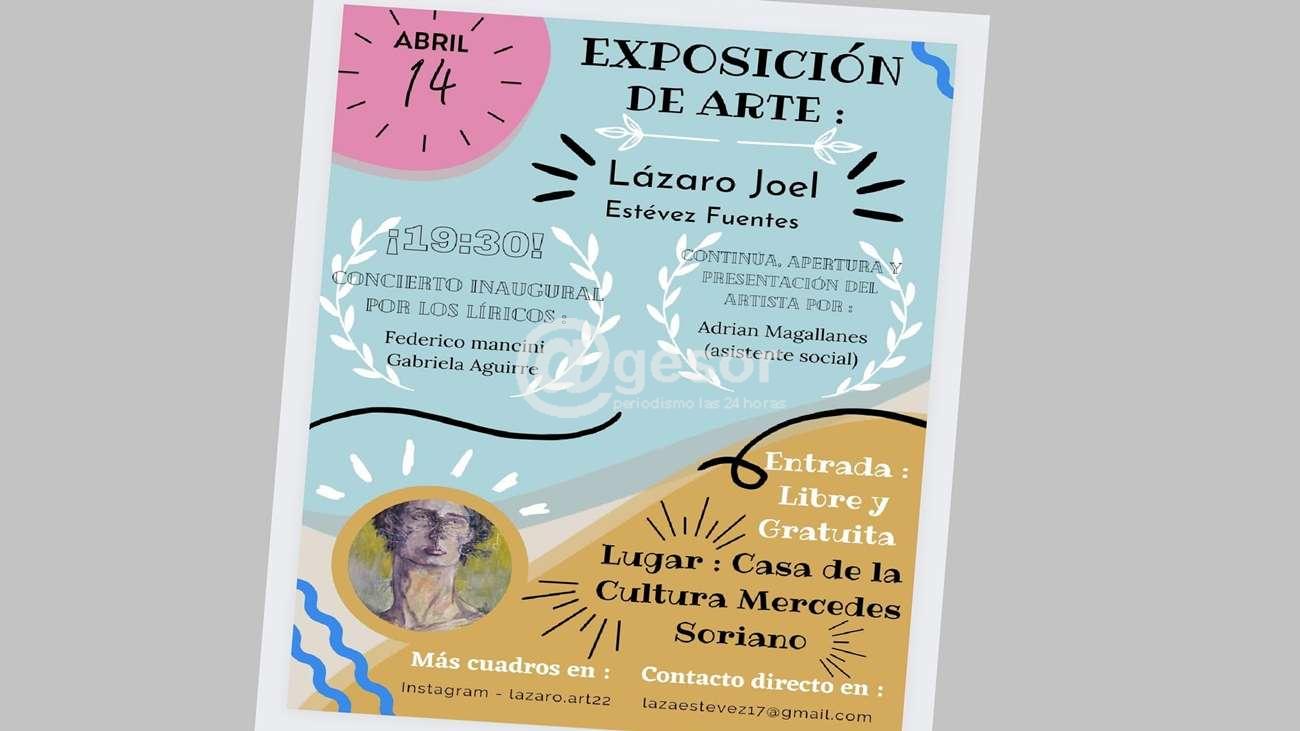 Este viernes 14 de abril se realizará la apertura de la muestra pictórica de Lázaro Joel Estévez Fuentes. Será a partir de las 19,30 horas, con un concierto inaugural de Los Líricos: Federico Mancini y Gabriela Aguirre.