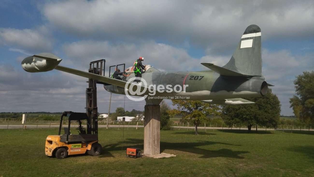 Este sábado culminó el proceso de restauración del avión T 33 FAU 207, ubicado en un pedestal en la ciudad de Mercedes en el espacio denominado "Aviadores de Soriano" situado junto al aeródromo "Ricardo Detomasi".