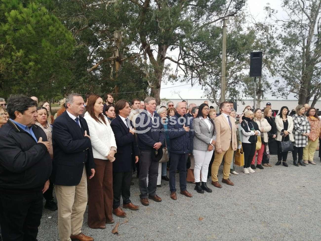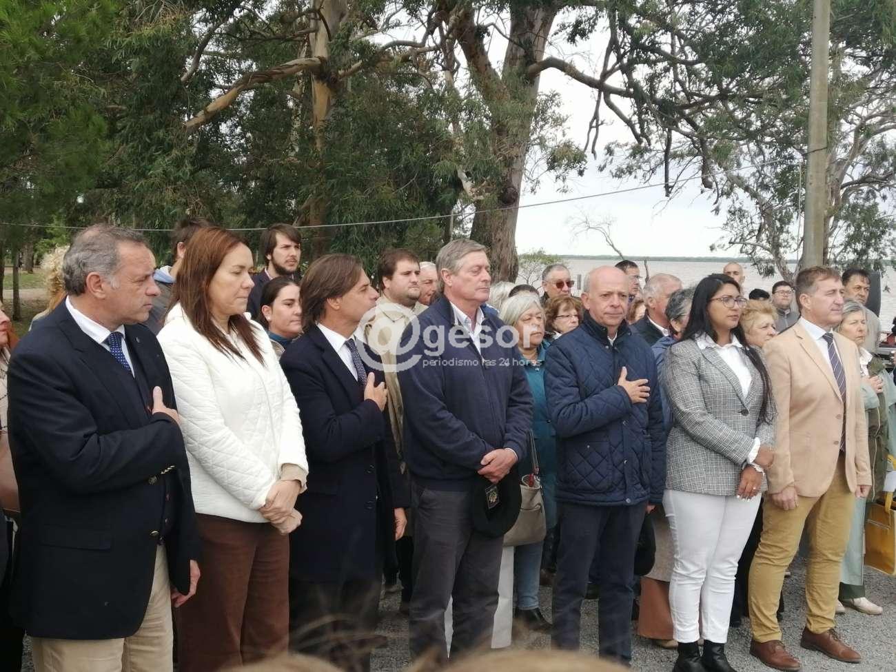 de la República, Dr. Luis Lacalle Pou, quien está acompañado por el Secretario de la Presidencia, Dr. Alvaro Delgado, el Intendente de Soriano, Guillermo Besozzi, la Presidenta de la Junta Departamental de Soriano, Andrea Nievas, Ministro de Defensa Nacional Dr. Javier García, el Alcalde de Dolores Joaquín Gómez, Alcalde de Rodó, Washington Loitey, la Directora de Descentralización de OPP María De Lima, ediles departamentales, autoridades militares y civiles, en un acto que fue organizado en forma conjunta por la Asociación Patriótica de Soriano con la comuna sorianense.