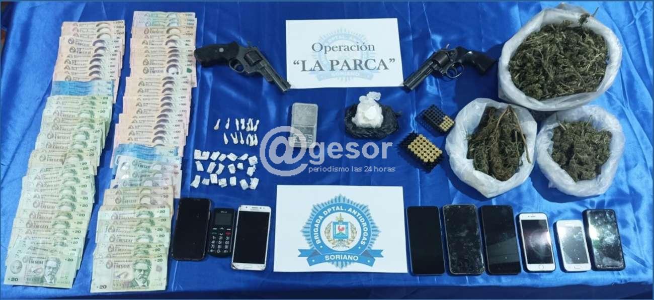 En dicha operación denominada “La Parca” participaron como apoyo la Unidad K-9, el Grupo de Reserva Táctica, Área de Investigaciones Zona Operacional 2 y Seccional 5ª, supervisados por el Jefe de Zona 2, logrando la detención de 10 personas, una de ellas menor de edad, las cuales fueron puestas inmediatamente a disposición de la Fiscalía actuante, como así se incautaron 109 gramos de sustancia en piedra color blanco simil cocaína, 33 envoltorios conteniendo sustancia color ocre simil pasta base, 5 envoltorios conteniendo sustancia vegetal simil marihuana, 768 gramos de sustancia vegetal simil marihuana, la suma de $ 23.080, una balanza de precisión, un revólver Tiver calibre 22, un revólver Zart calibre 22, 34 cartuchos calibre 9mm, 25 cartuchos calibre 22, 2 cartuchos calibre 38, 9 teléfonos celulares, una moto Lifan, y un auto Fiat Uno.