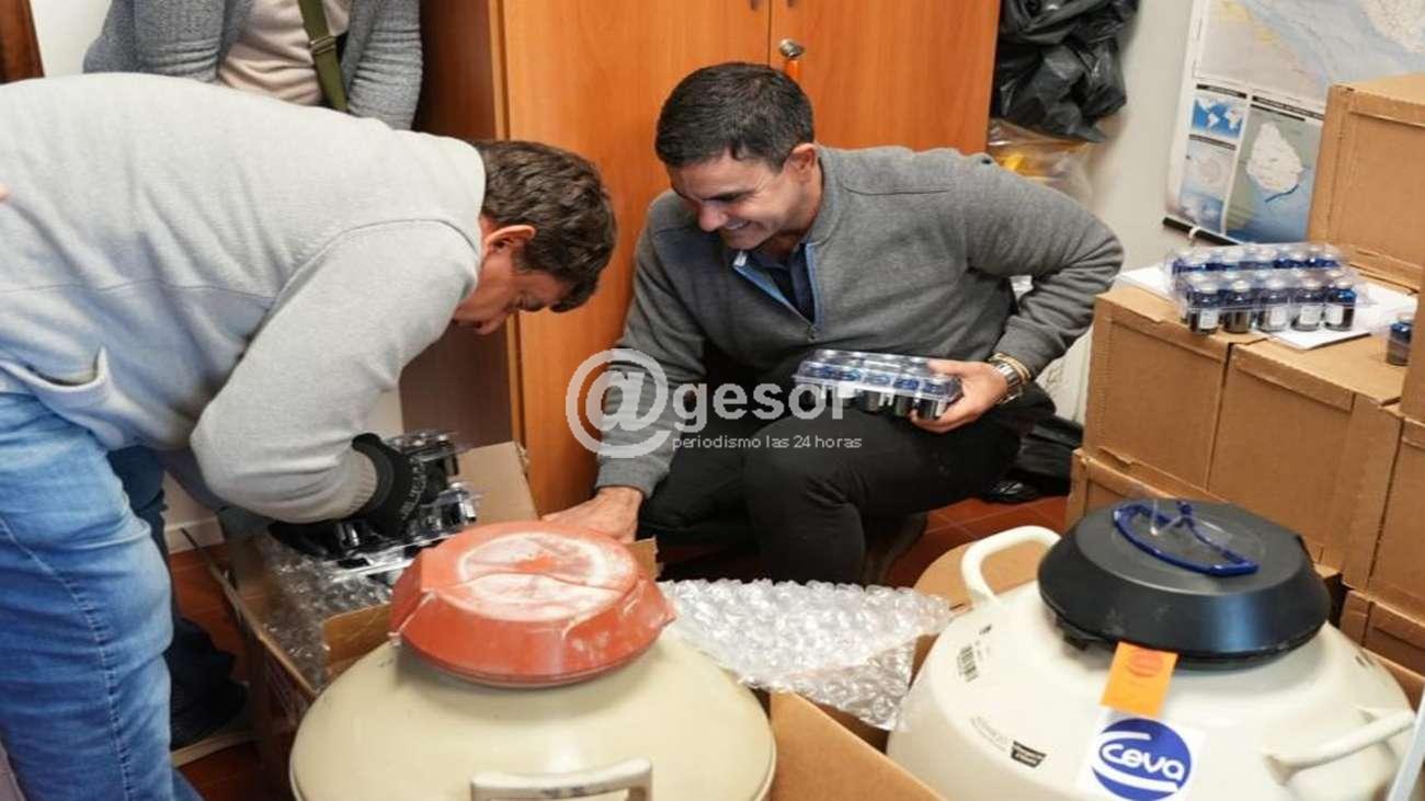 Las vacunas están envasadas en 225 ampollas de 4.000 dosis cada una, congeladas en termos de nitrógeno líquido a -195°C. La semana próxima comienza la distribución de la vacuna inactivada destinada a animales adultos, proveniente de México.