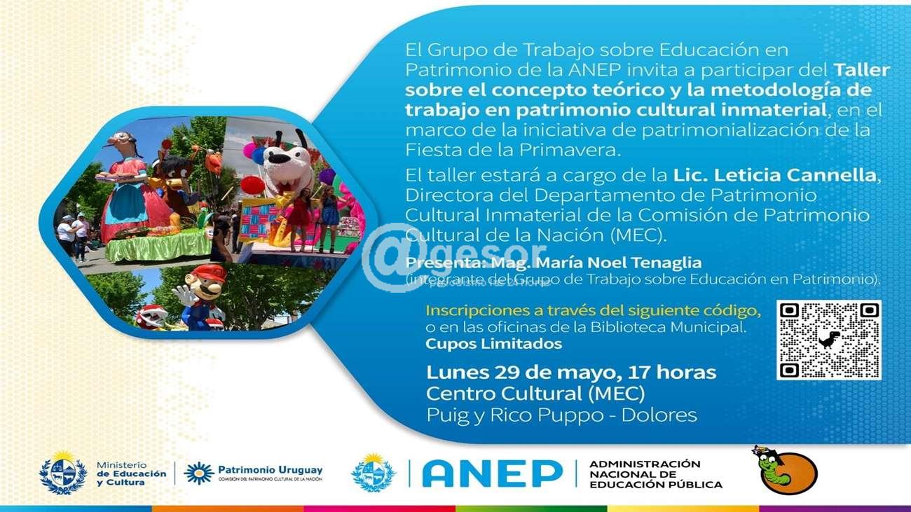 El Grupo de Trabajo sobre Educación en Patrimonio de la ANEP invita a participar del Taller sobre el concepto teórico y la metodología de trabajo en patrimonio cultural inmaterial, en el marco de la iniciativa de patrimonialización de la Fiesta de la Primavera de Dolores.