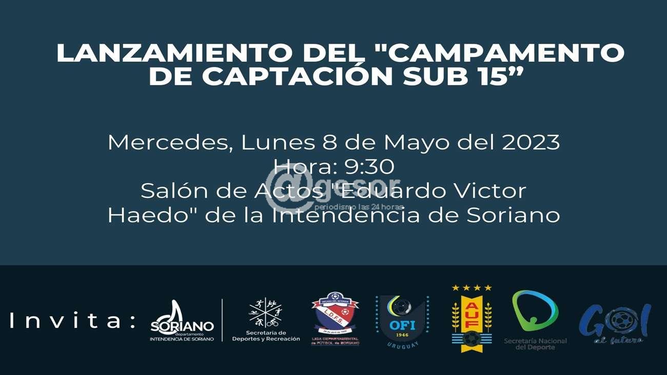 El pròóimo lunes  se realizará el lanzamiento del Campamento de captación sub 15. Una actividad que cuenta con  el respaldo de la Intendencia de Soriano, la Liga de Fútbol de Soriano, OFI, AUF, la Secretaría Nacional de Deportes y Gol al futuro.