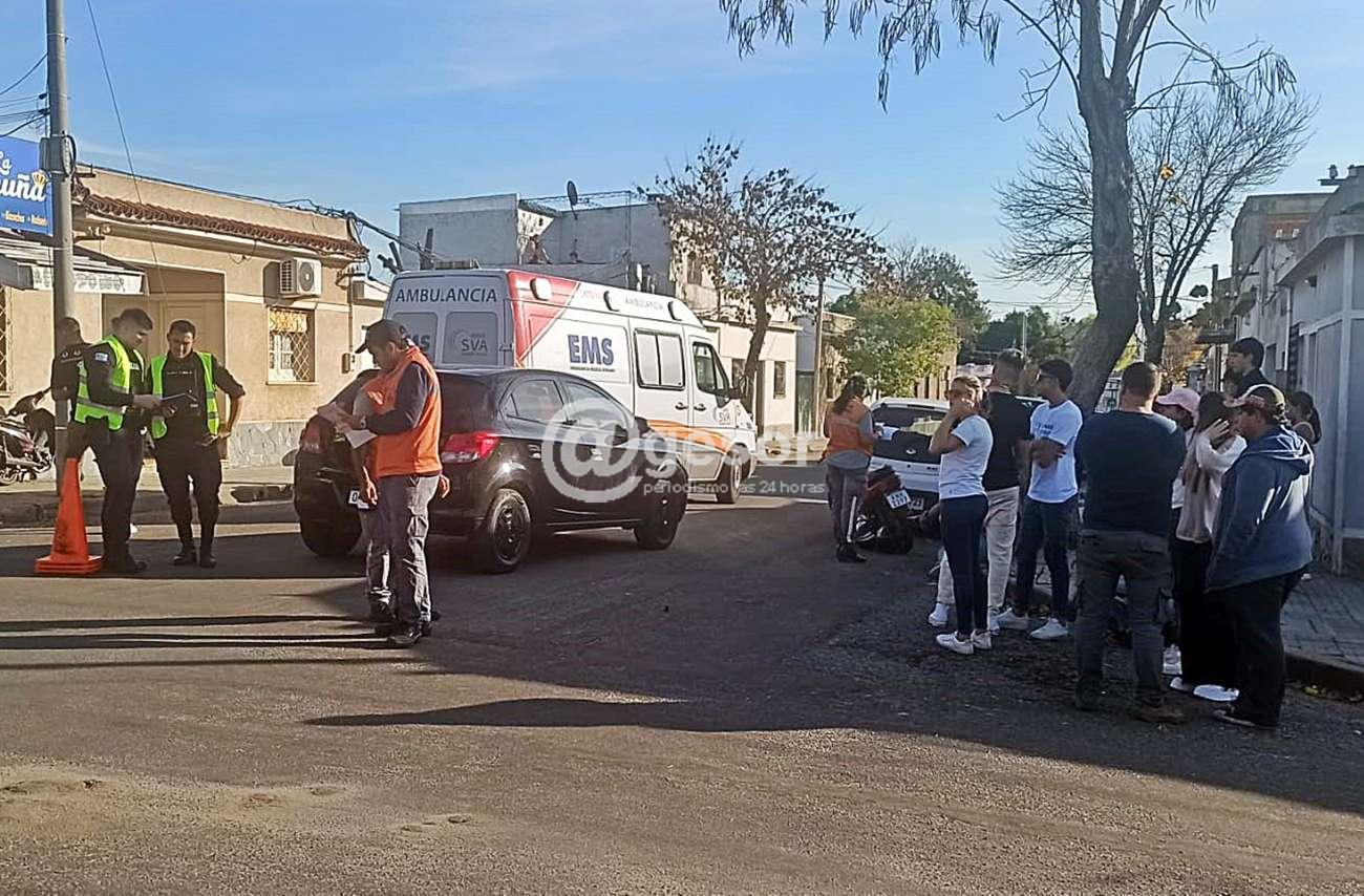 Próximo a las 15.30 horas de este domingo se produjo siniestro de tránsito en la intersección de Casagrande y Gomensoro en Mercedes, cuando por la primera de las arterias circulaba de Este a Oeste el automóvil, matrícula OAC 9474, mientras que por la segunda de Sur a Norte lo hacía la moto chapa KNH 2297, en el que viajaba una pareja.