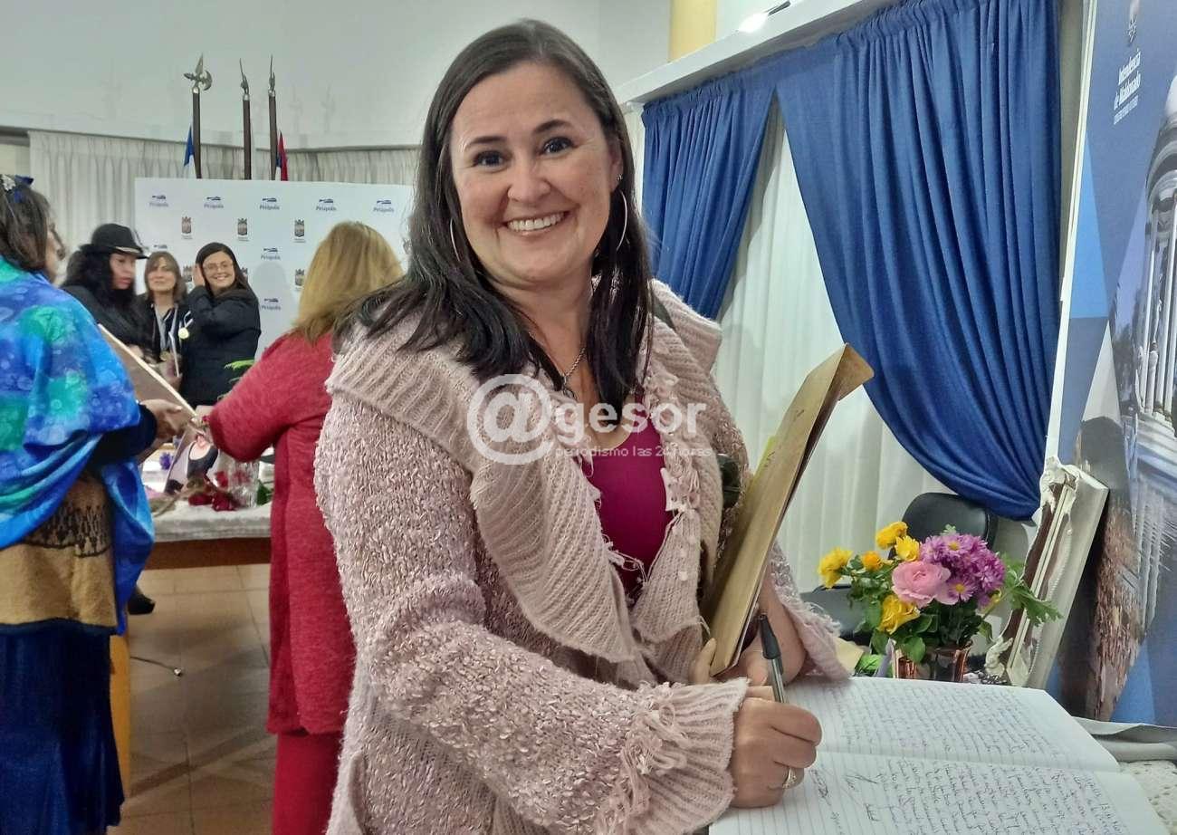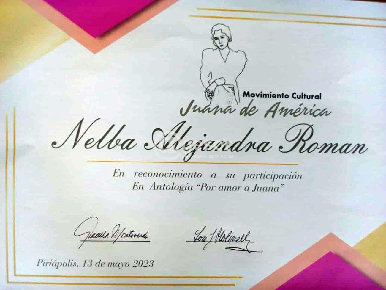 Para recibir el reconocimiento por su participación, Alejandra viajó hasta Piriápolisi y tomó parte del evento, donde procedió a dar lectura a su trabajo literario que forma parte de la Antología.