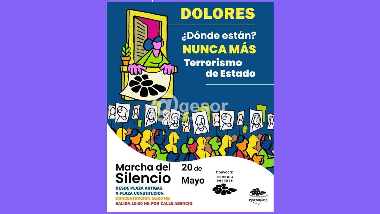 El sábado 20 el grupo Memoria Dolores convoca a la concentración que se realizará en Plaza Artigas, a las 18 horas, para marchar sobre las 19 horas hasta Plaza Constitución. “Al llegar a la Plaza Constitución se hará lectura de una proclama y habrá una exposición de información referente a los desaparecidos de Soriano.