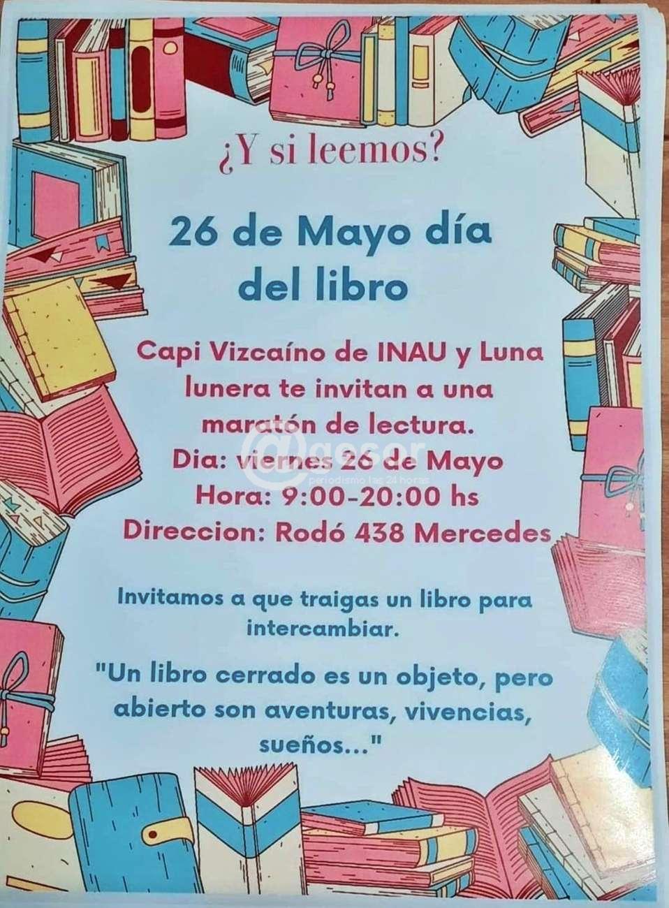 Será este viernes 26 de 9.00 a 20.00 horas en calle Rodó 438 de Mercedes invitándote a que lleves un libro para intercambiar.