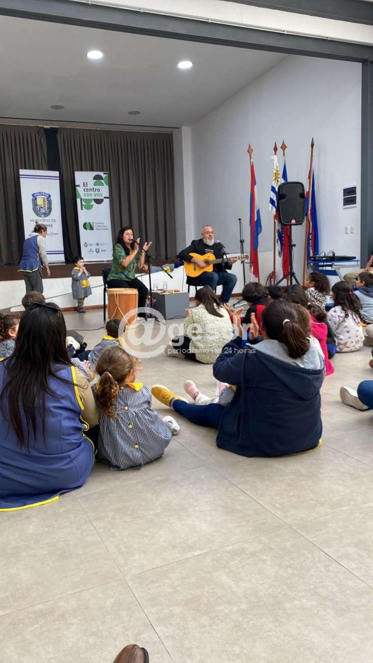 Desde el Municipio de Dolores se informa que en el día de ayer, en el marco de la Semana del Libro recibimos en el Centro Cultural Nacional a alumnos del CAIF “Bichitos de luz” y del Club Gurisitos quienes disfrutaron del show “Soñar Cantando” brindado por Camila Sánchez y Sebastián Piazze.