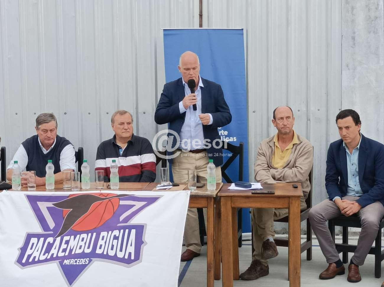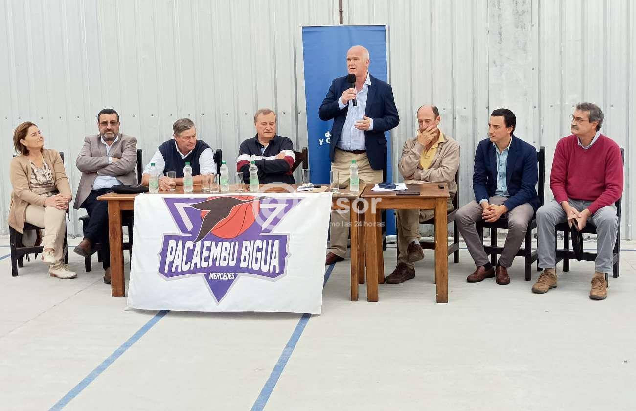 A su turno, el Intendente Guillermo Besozzi destacó la importancia que tiene que este tipo de convenios se firmen en el Interior, "son convenios que importan muchísimo para la sociedad de un pueblo, de una ciudad como Mercedes, o de donde fuere. El "Paca" era más chico que el predio que ocupa ahora, fueron comprando otras partes, como esta en la que estamos, haciendo un esfuerzo importantísimo, intentando hacer cosas y creciendo en su masa social, y para dar mejor servicios y deportivos, lo importante es tener lugares adecuados. Y esta obra que se va a hacer, un club que ha tenido una mirada muy amplia, uniéndose con otro club de la costa como lo es el Biguá, es fundamental a la hora de desarrollarse, desde la Intendencia acompañamos esta firma, y felicito al Paca, flamante campeones del Regional de Básquetbol -yo me crié en este barrio cuando era piso de baldosas y tableros de madera hoy vienen algunos yernos, hija, nietos- festejo que se lleve adelante esta firma, es un club que ha ido a más".