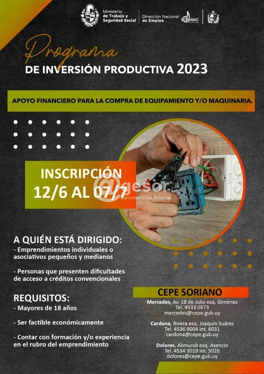 Se abrió período de inscripción para el Programa de Inversión Productiva 2023 del 12 de junio al 7 de julio, para recibir apoyo financiero para la compra de equipamiento y/o maquinaria.
