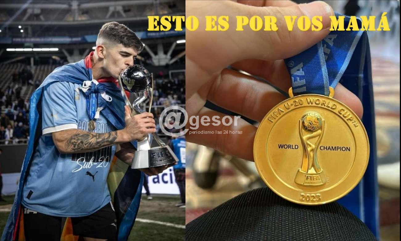 El juvenil mercedario Santiago "Chulo" Homenchenko, integrante del Campeón Mundial Sub 20, como expresamos en @gesor dedicó la consagración a su mamá, como cada uno de sus logros, a esa mamá que viene luchando contra una enfermedad, en un proceso que ha tenido mejoría y en los últimos tiempos recayó, inclusive se habló de la posibilidad de ir a La Plata para acompañar a Santiago en esta instancia, pero su salud no lo permitió.