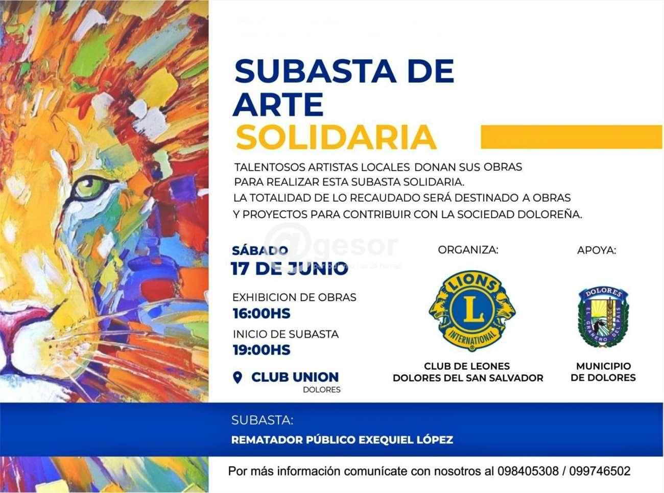 Este sábado 17 de junio desde las 19.00 horas en el Club Unión de Dolores, estará desarrollándose subasta de arte solidaria, pudiéndose apreciar la exhibición de obras desde las 16.00 horas.