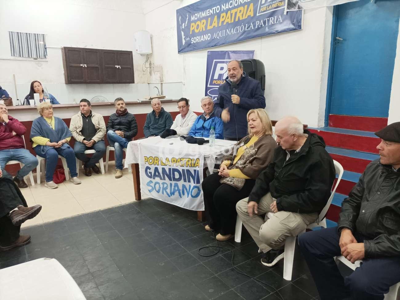 Y de repente venimos a Soriano, teníamos una agrupación, la 250, y hoy acá vamos a recibir la adhesión de nueve agrupaciones más y algún dirigente independiente, hoy cerramos una etapa con 10 agrupaciones que apoyan a Por La Patria. Son grandes, son chicas, lo sabremos después, lo que estamos es construyendo una red de dirigentes, de agrupaciones, de todo el departamento, que si nos va bien, va a ofrecer las listas con candidatura propia, pero es notorio que hay un espacio necesario y que en la medida que van habiendo definiciones, van dejando espacios porque los dirigentes se mueven y no siempre la gente se mueve con los dirigentes. La gente busca donde sentirse representada".
