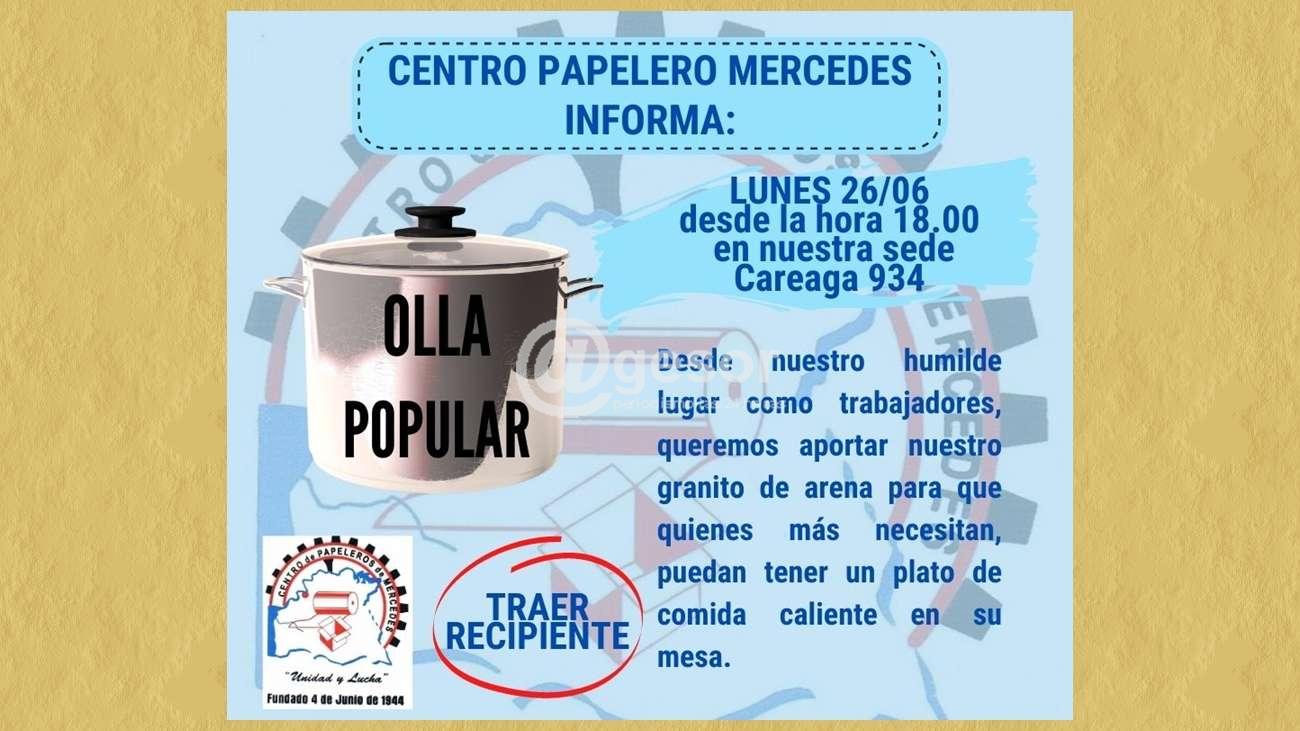 Centro Papeleros Mercedes informa que este lunes 26 de junio retoma su trabajo solidario mediante una olla popular.