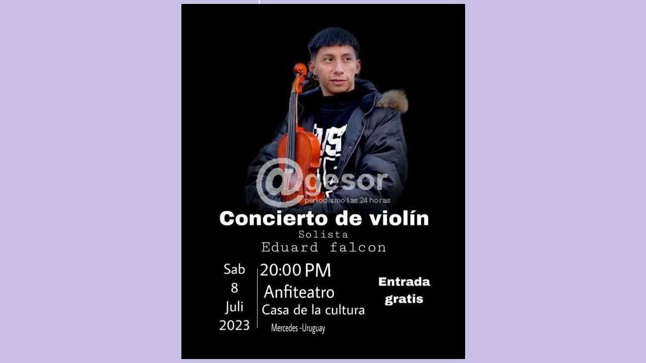 El jóven músico Eduard Falcón brindará un concierto de violín.Será el sábado 8 de julio en el anfiteatro de Casa de la Cultura de Mercedes.