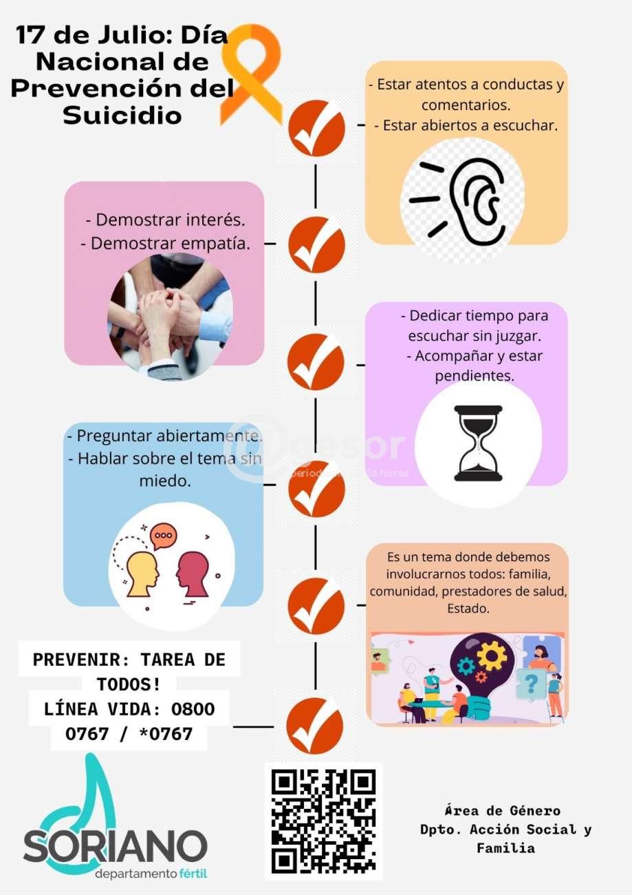 El flyer que se adjunta, además de información muy importante, contiene un código QR con el Rap Prevención del Suicidio, creado en junio 2022 por Thalía de 25 años de edad de la ciudad de Dolores.