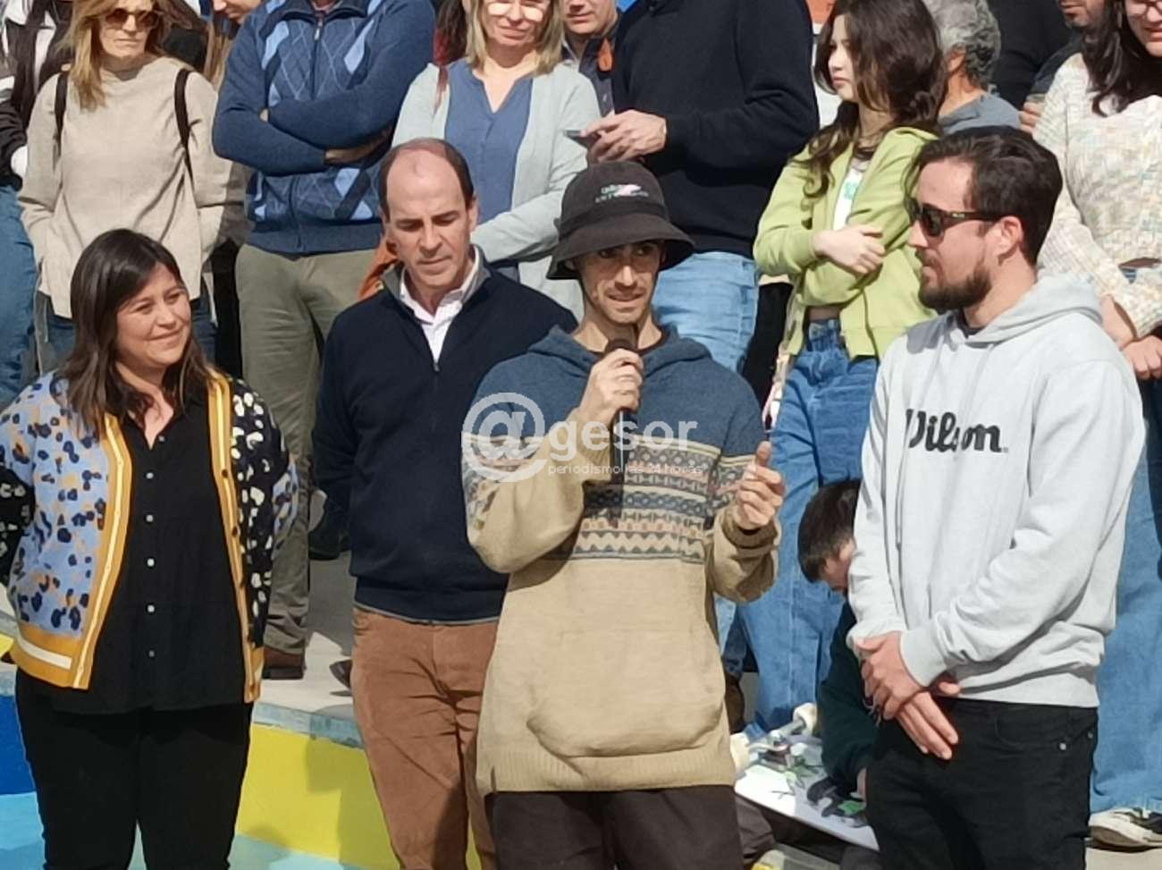Agradeció "a todos los que aportaron, a la Dirección de Arquitectura, a la Deportes, a Exequiel de la Constructora, esta pista se hace por una licitación donde participa el FDI (Fondo de Desarrollo del Interior) que mandan sus saludos, y gana este señor con su empresa y resulta que él conoce de qué estábamos hablando porque es del mundo del skate, y eso es un apoyo más.