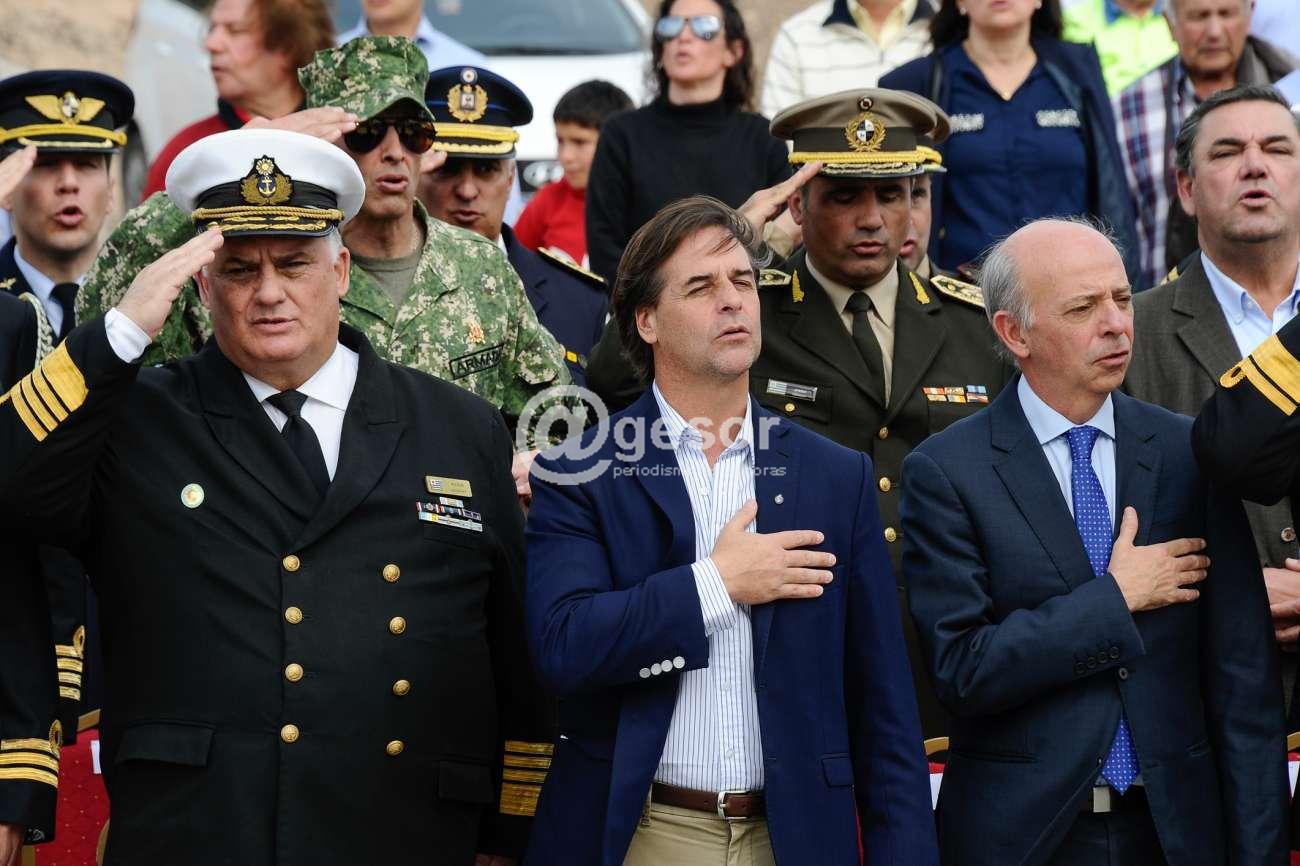 En la ceremonia participaron también el subsecretario de Defensa, Rivera Elgue; el comandante en jefe de la Armada, Jorge Wilson; el comandante de la Flota, Mario Vizcay, y los intendentes de Río Negro y Soriano, Omar Lafluf y Guillermo Besozzi, respectivamente, entre otras autoridades nacionales, militares y departamentales. El mandatario saludó a los efectivos presentes y descubrió una placa conmemorativa de la ocasión, acompañado por los demás jerarcas.