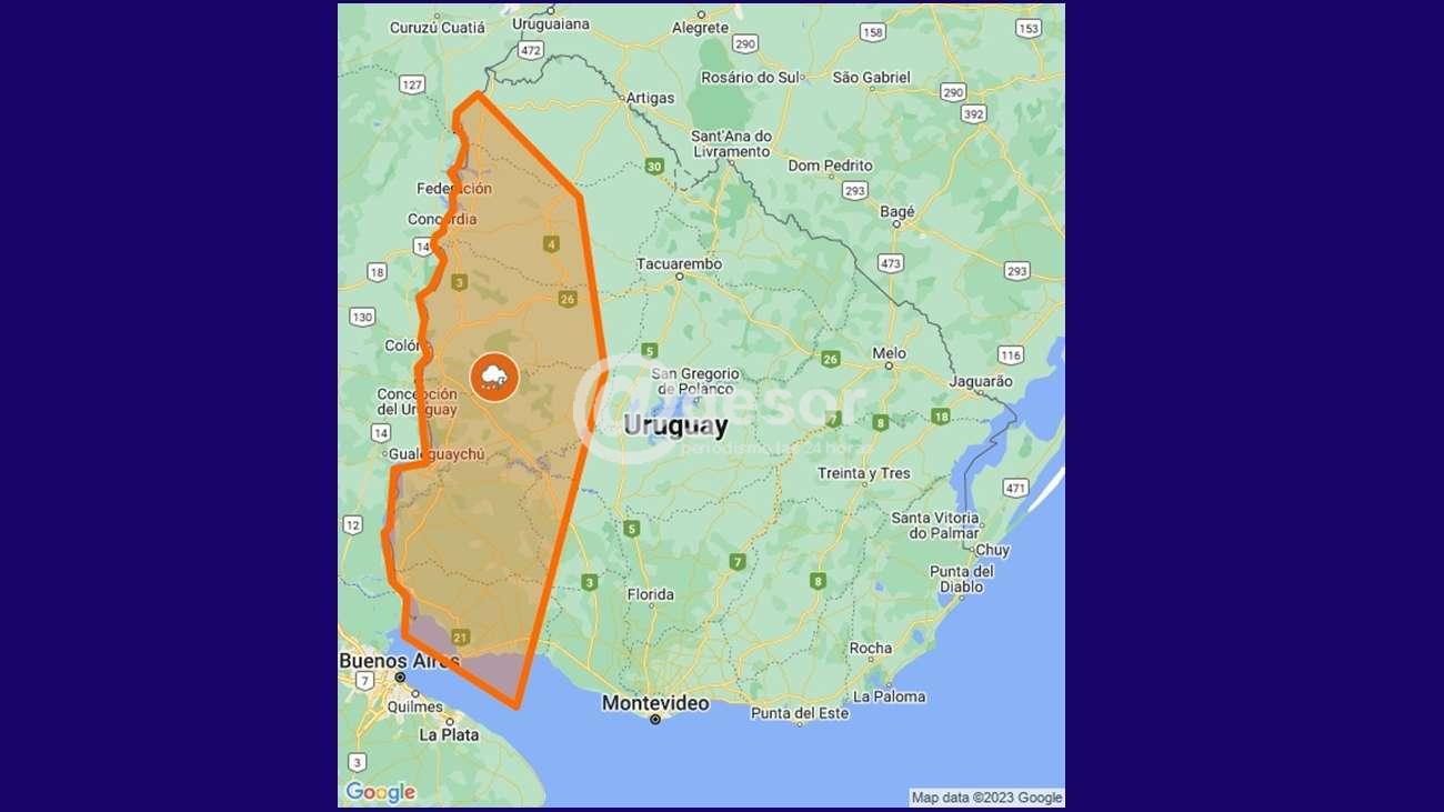 Descripción: Frente semi-estacionario afecta el país, generando tormentas algunas puntualmente muy fuertes. Cabe destacar que en zonas de tormentas se podrán registrar lluvias intensas en cortos períodos, ocasional caída de granizo, intensa actividad eléctrica y rachas de viento muy fuertes. Se continuará monitoreando la situación y se informará ante eventuales cambios.