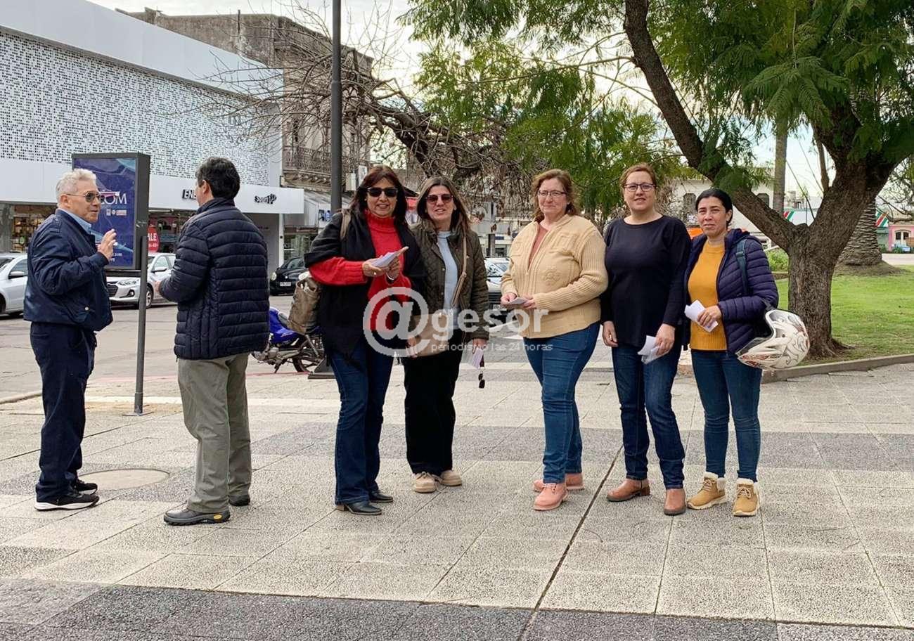 Docentes de Geografía (autoconvocados) estuvieron en plaza Artigas distribuyendo folletos explicando los cambios que se están impulsando por las autoridades de la ANEP en la Transformación Educativa y que según estos docentes se genera perjuicio para esta asignatura.