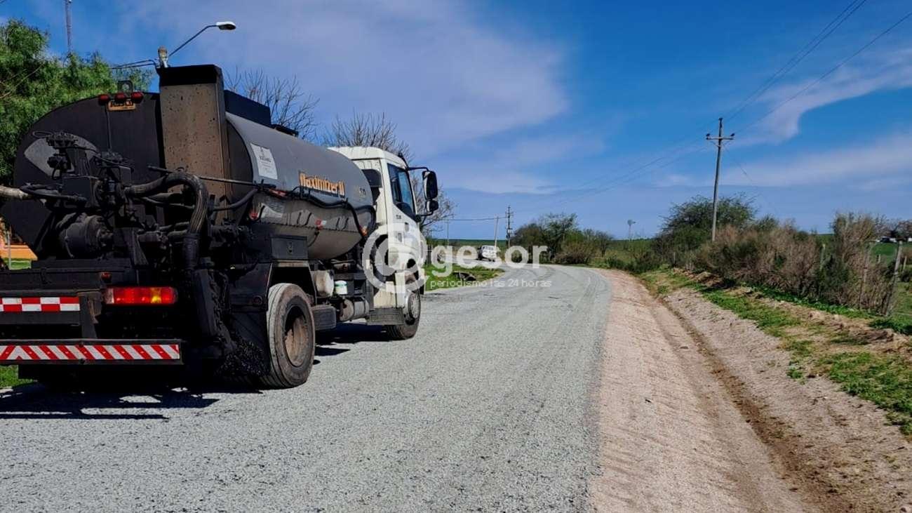 Las tareas encaradas por el Dpto. de Obras marcan la intervención en las 12 cuadras de la localidad. En ellas ya se concretó la mejora de la base, recarga y compactación con material granular, utilizándose balasto, por lo que al quedar preparadas, este martes se aplicó el riego asfáltico