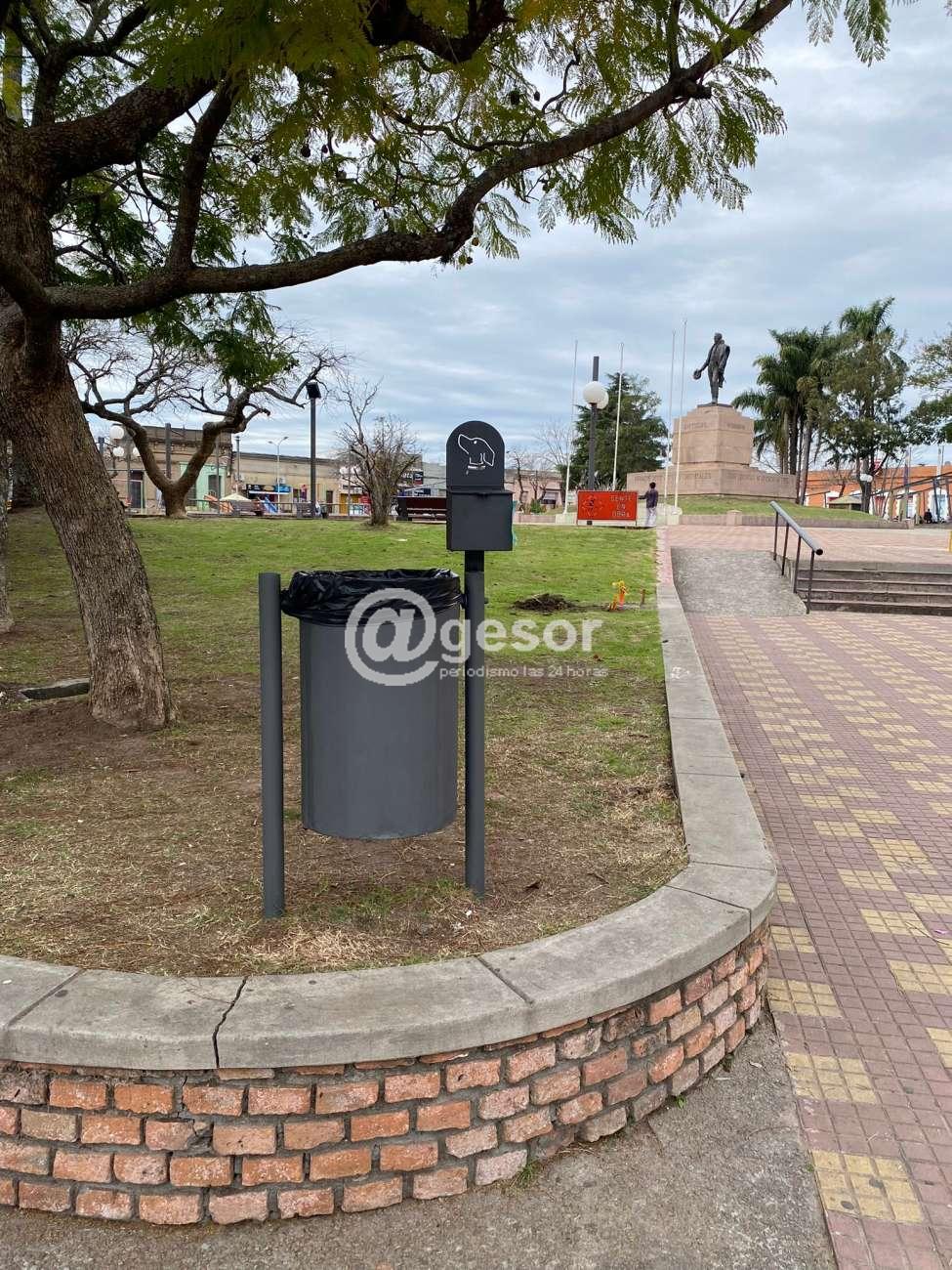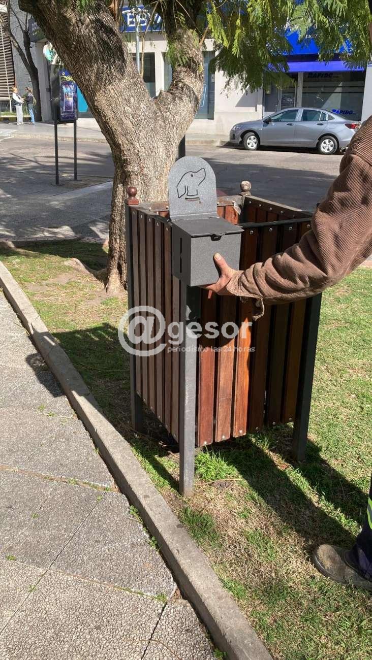 Los dispensadores están colocados junto a los recipientes para residuos, de manera tal que una vez cargadas las bolsas puedan ser desechadas ahí mismo.
