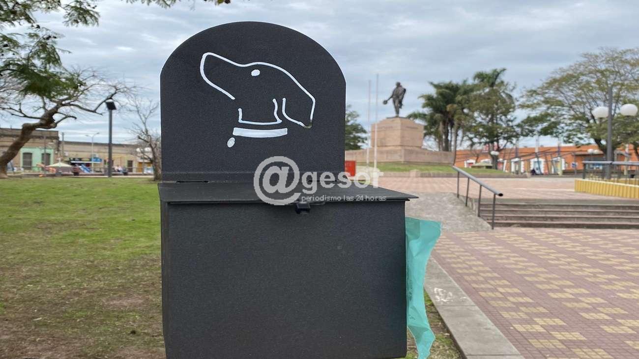 Se trata de dispositivos de metal, con una caja en la parte superior del parante, en la que se guardan las bolsas de nylon reciclable que pueden ser retiradas de a una por los propietarios de los canes.